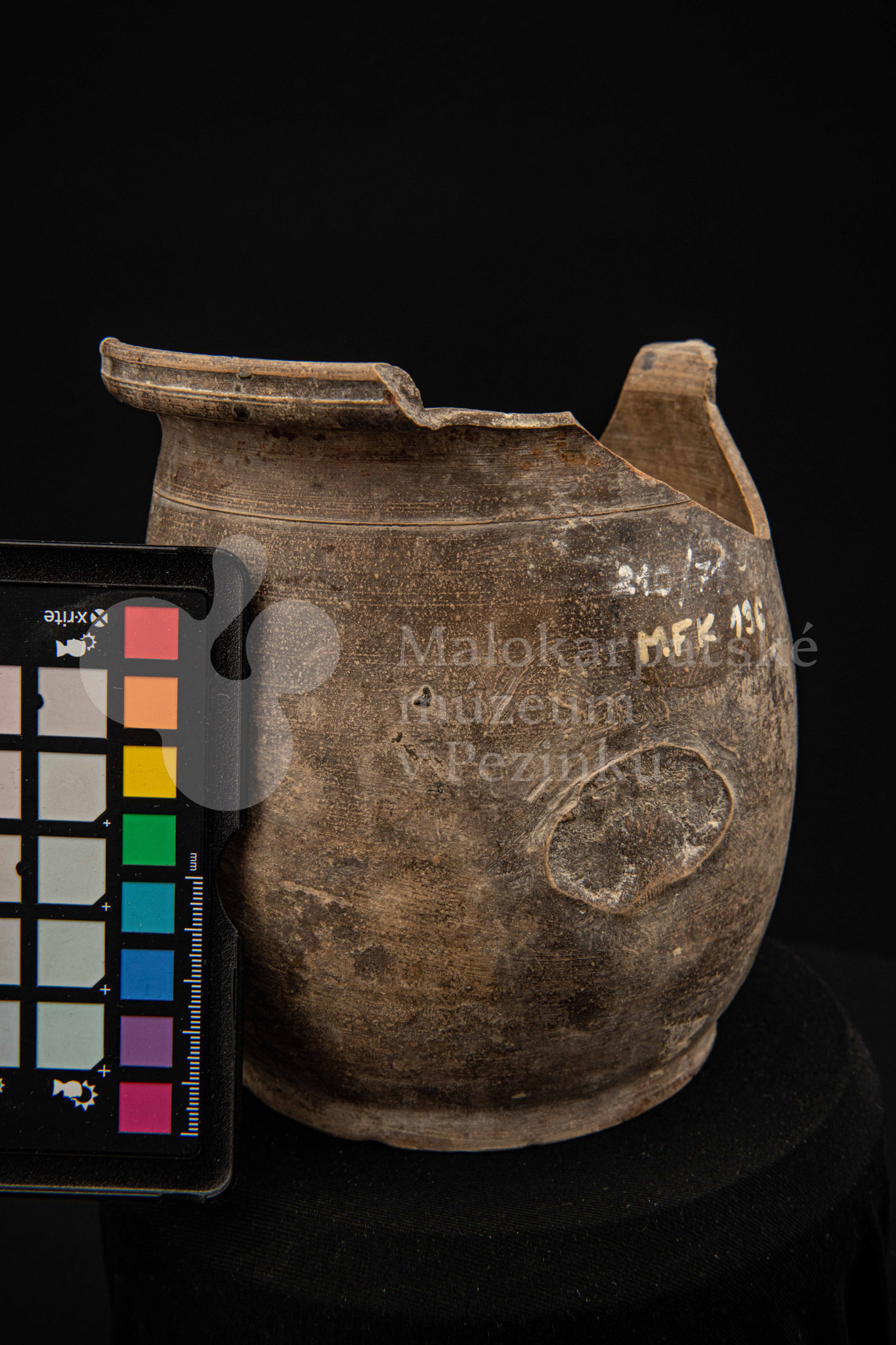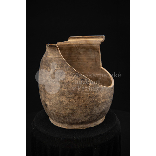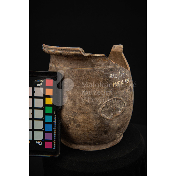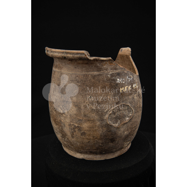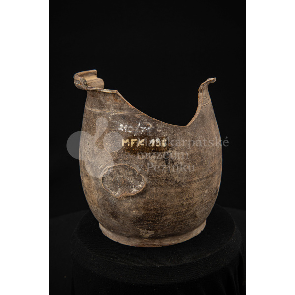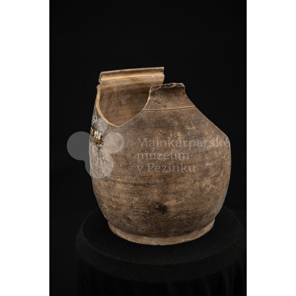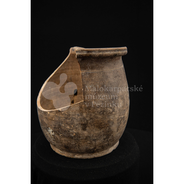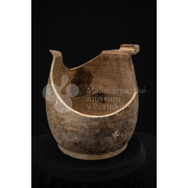 Črep na štetce – hlinená nádoba, raz pálená, neglazovaná, takmer po celom obvode rozbitá. Spevnená drôtom. Bez značenia.