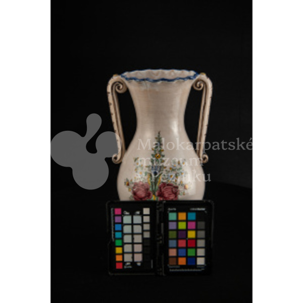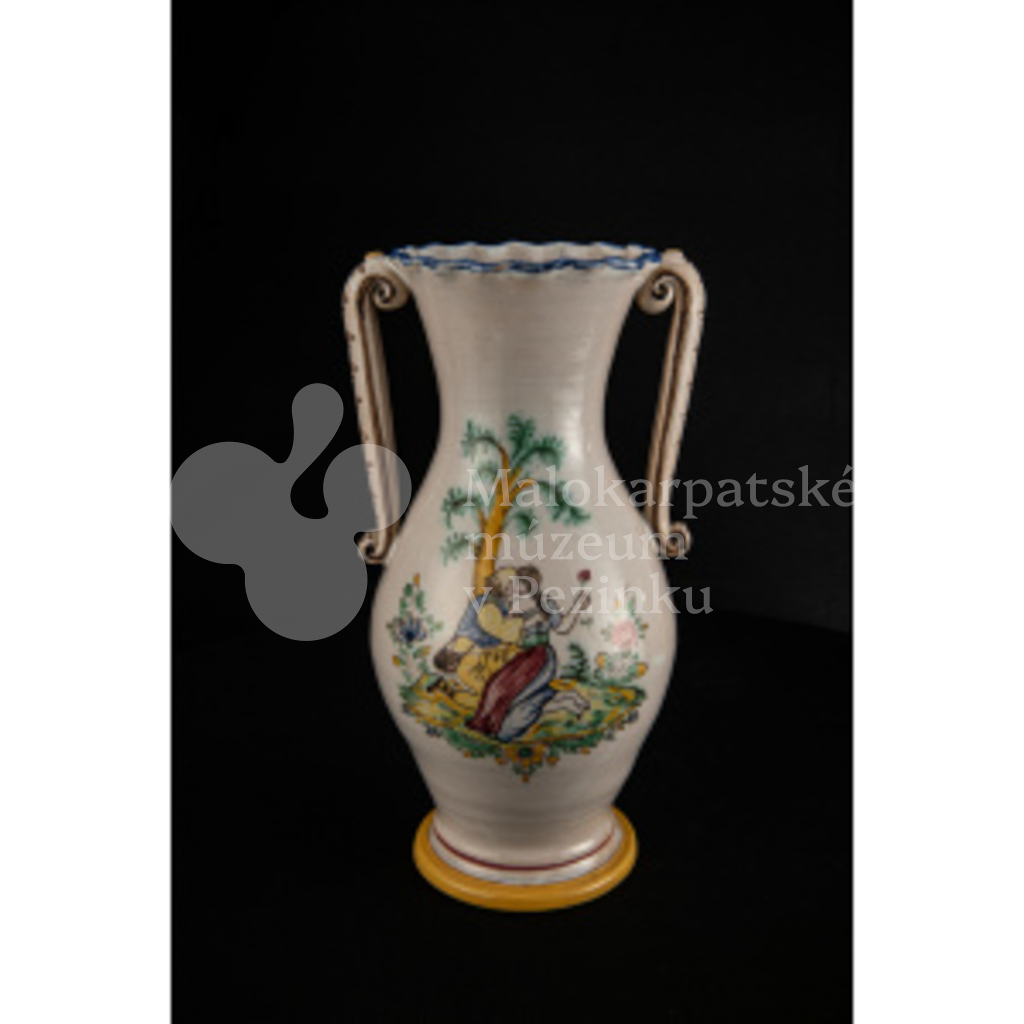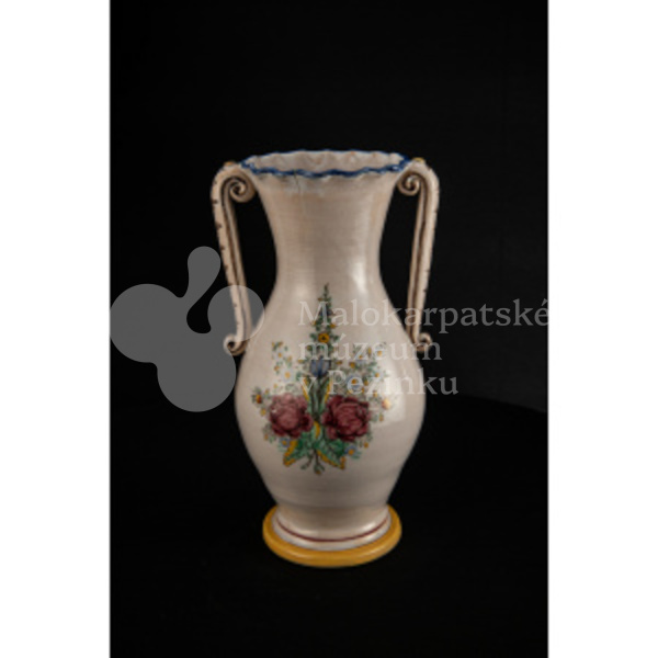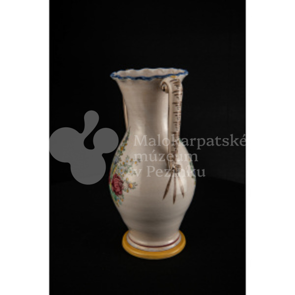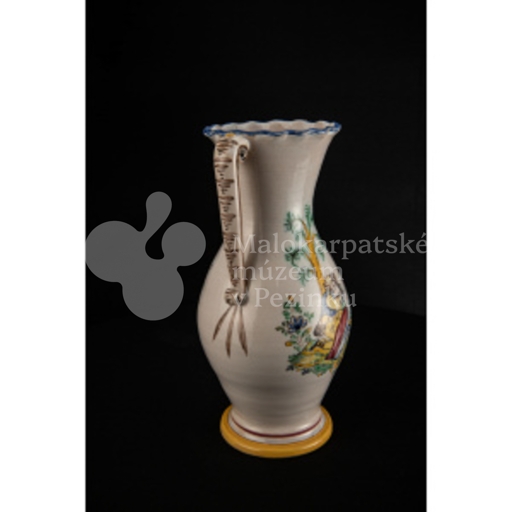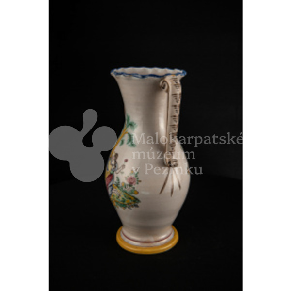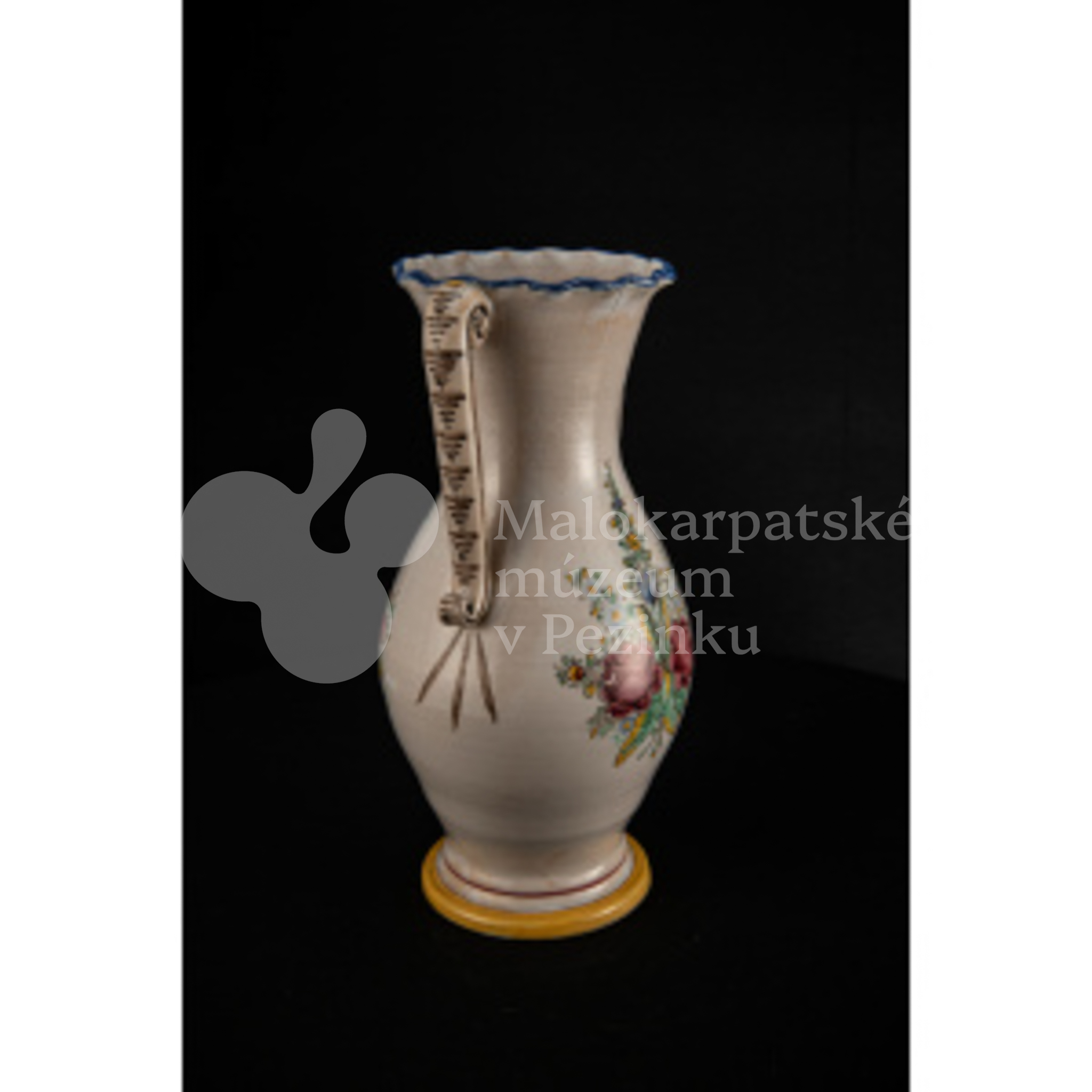 Črpák fajansový, na prednej strane Panna Mária Tálenská. Po jej pravej strane postava sv. Františky a po ľavej sv. Ferdinanda. V dolnej časti nápis. Po celej ploche bielo glazovaný, vysokožiarny dekor v pestrých farbách. Pod uchom je značenie FK.ST.