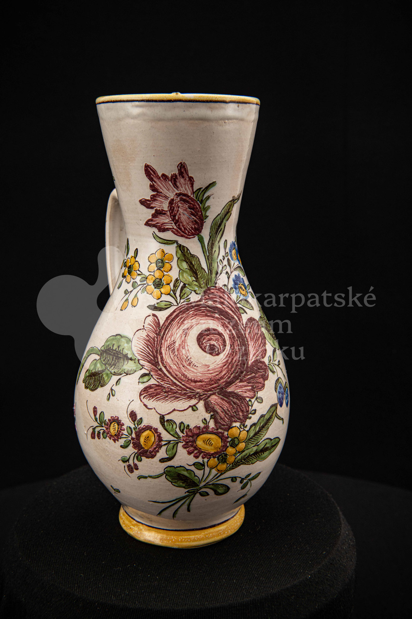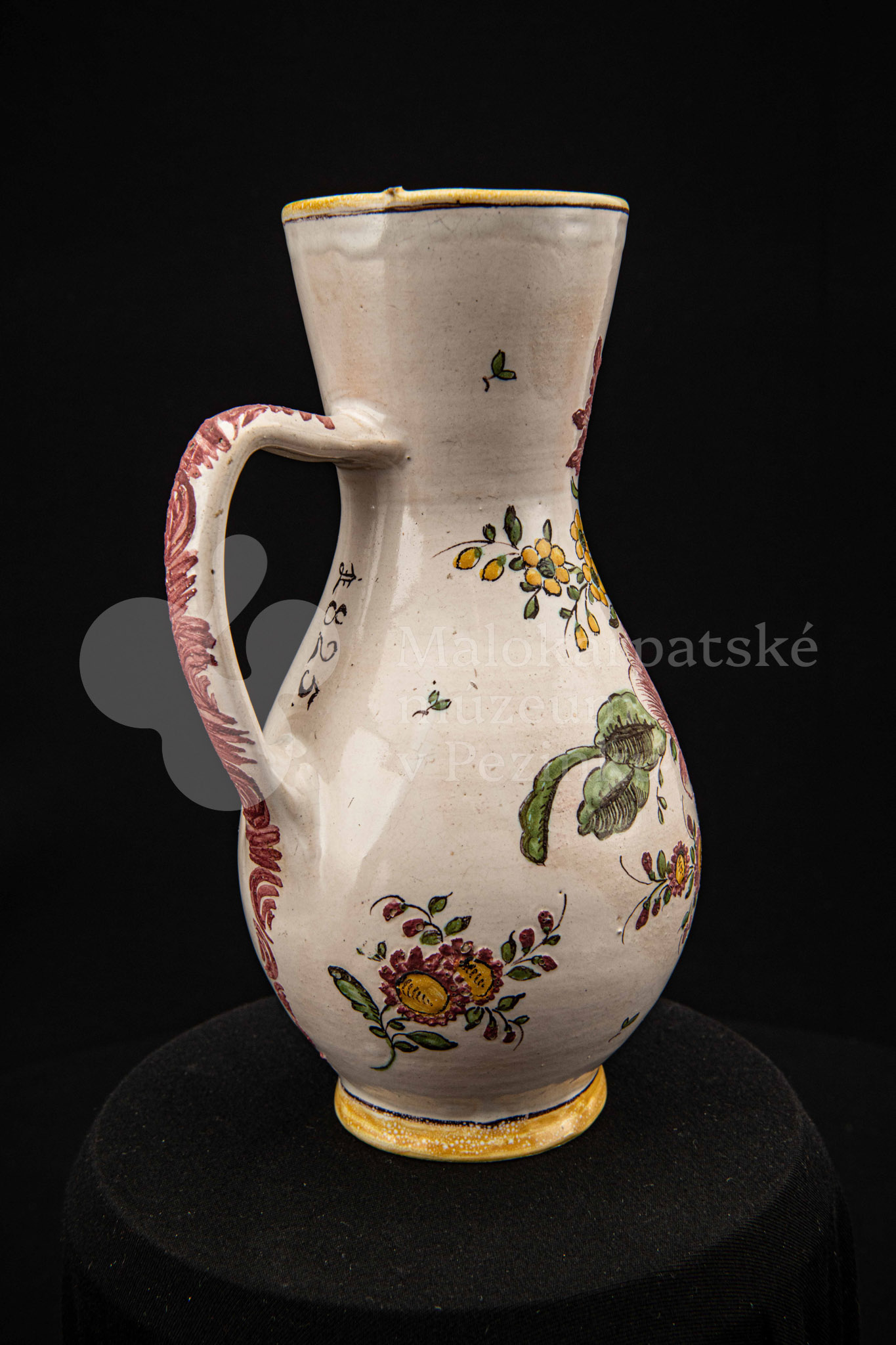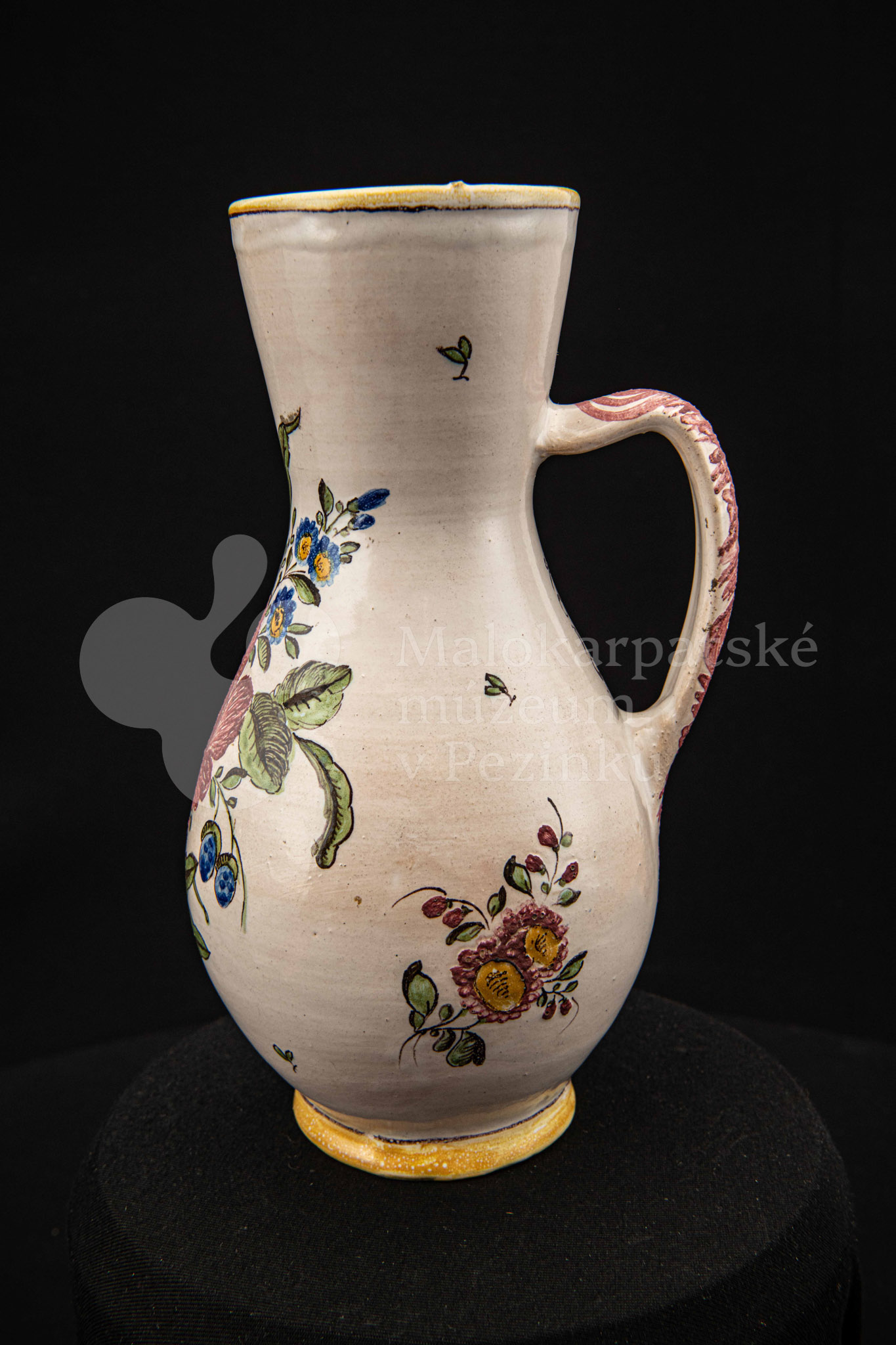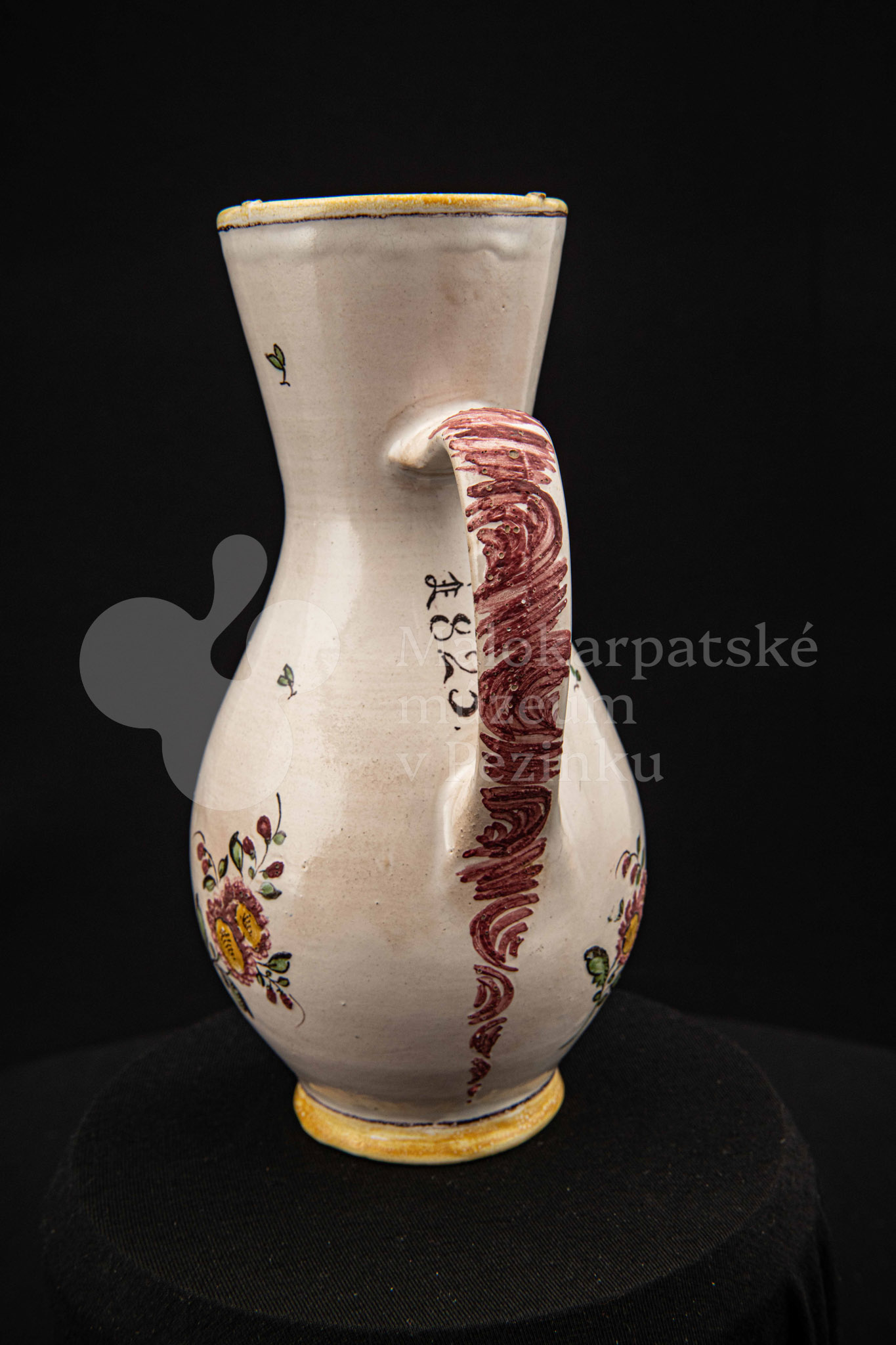 Džbánok fajansový zvaný „holba“. Po celej ploche bieloglazovaný, vysokožiarový dekor s motívom červených kvetov (ruže). Farebnosť je rôzna s prevahou červenej. Pod uchom nápis 1825. Na dne značenie ST.