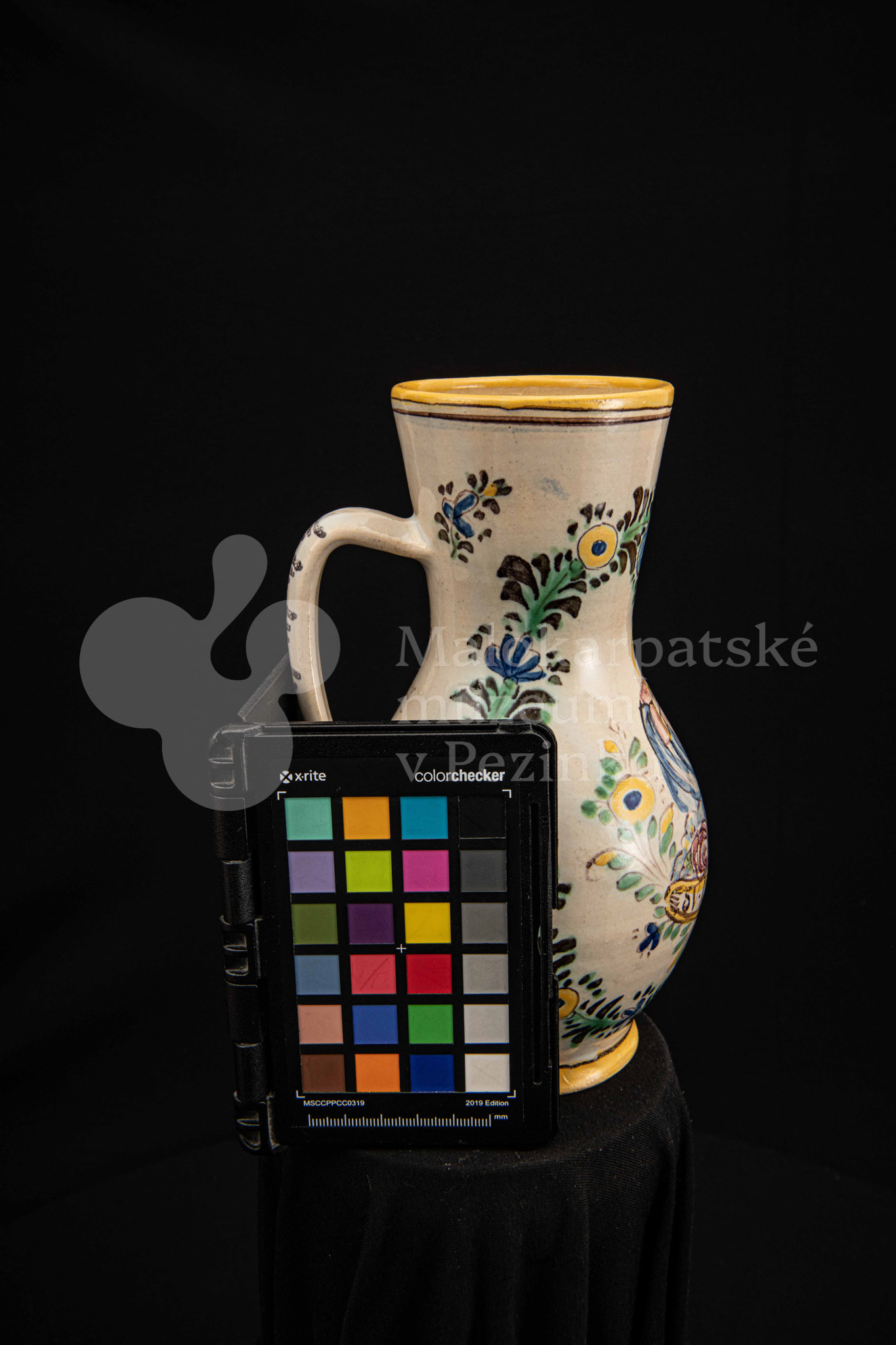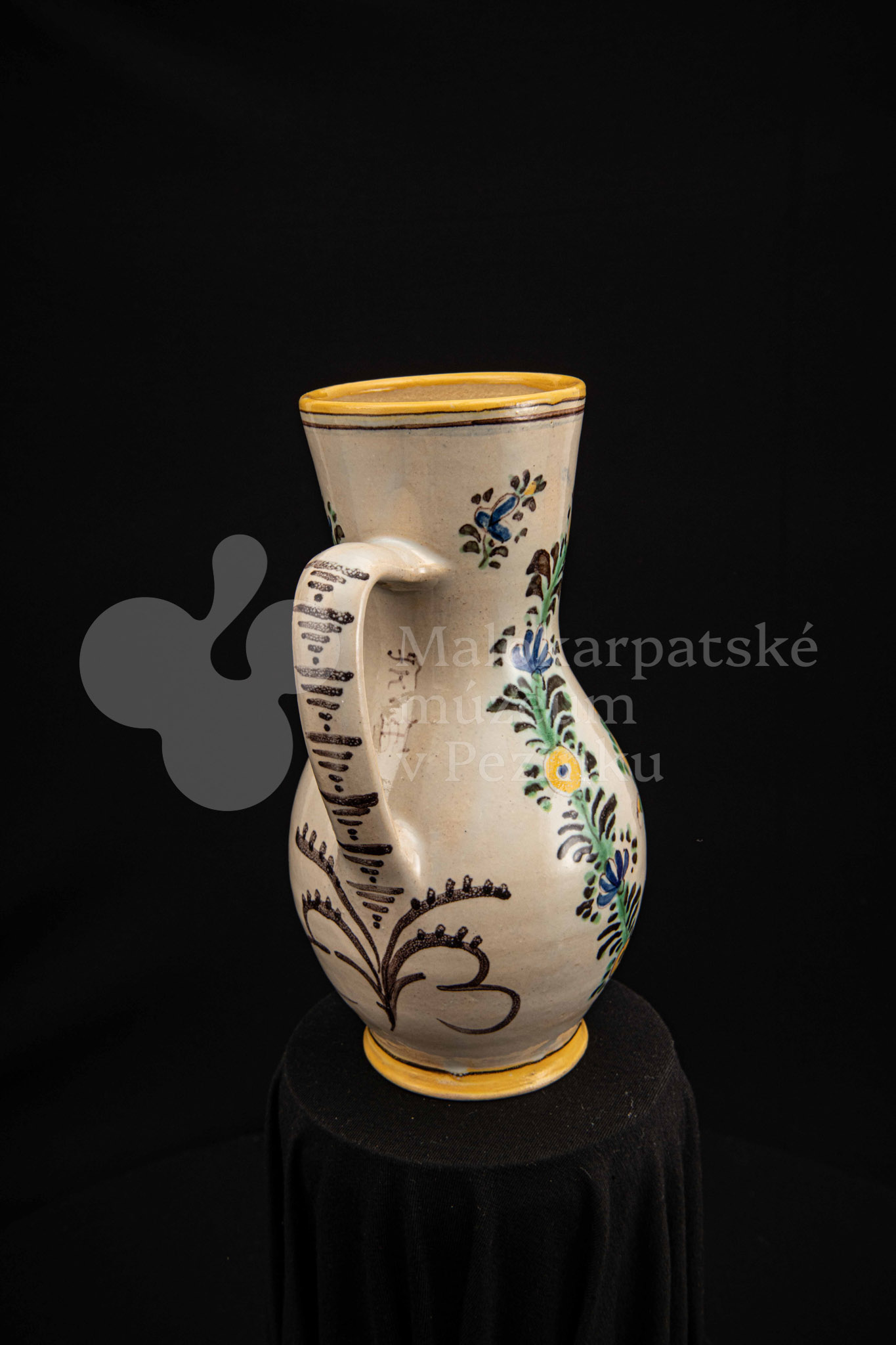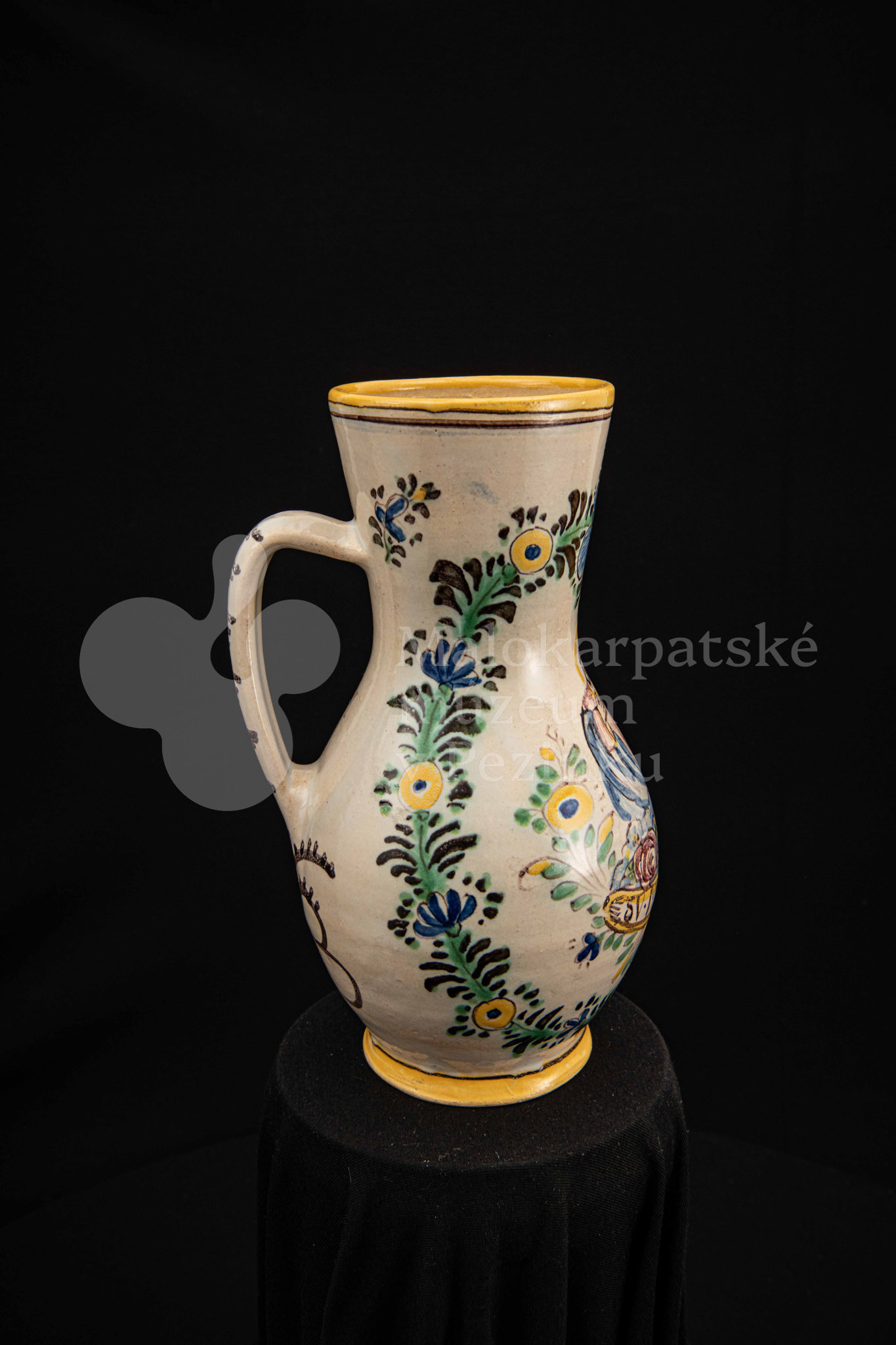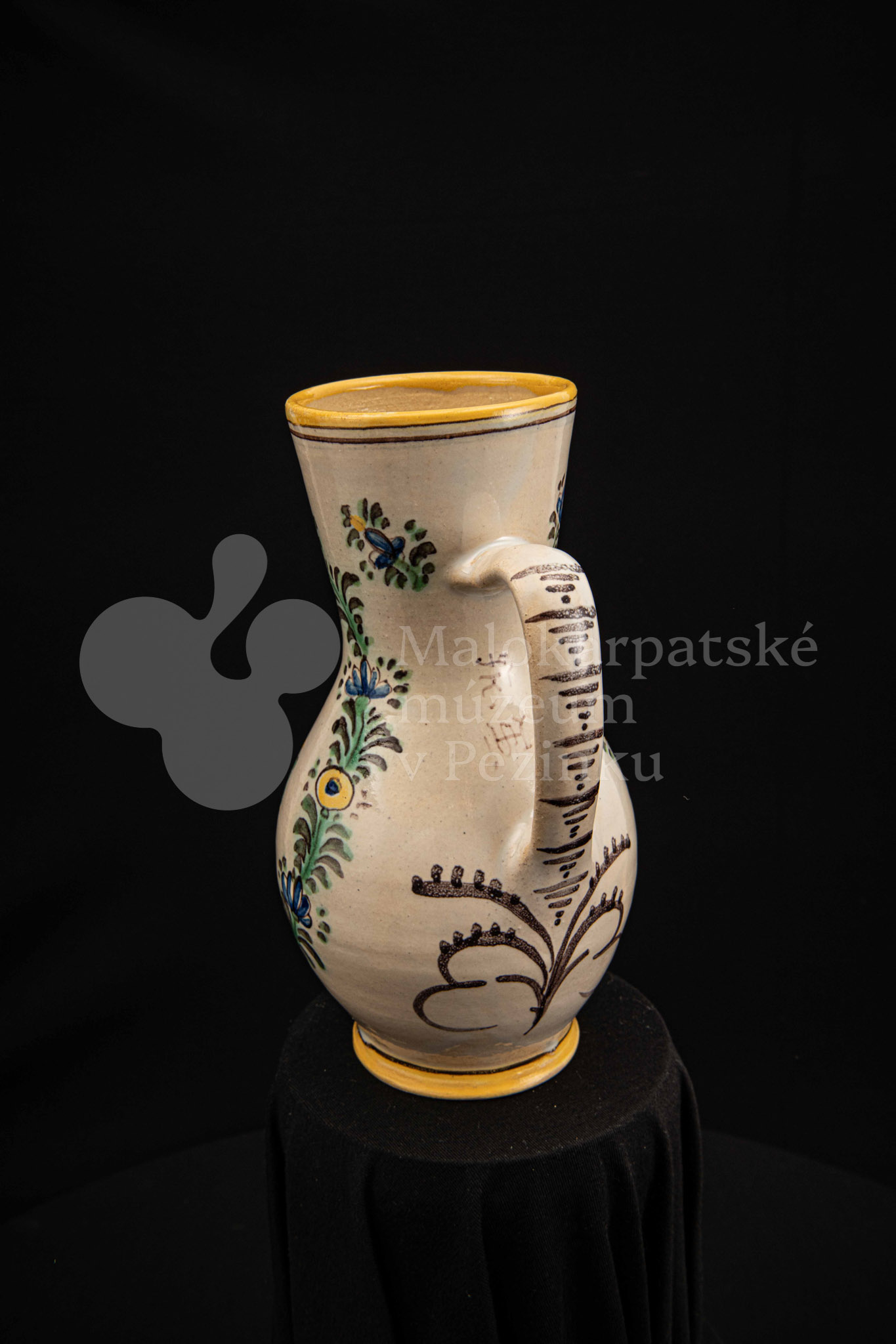 Džbánok fajansový – v strede stojaca postava apoštola držiaceho v pravej ruke sekeru. Pod ním nápis „SV.MATEJ“, okolo neho kvetinový veniec. Bielo glazovaný, rôznofarebný vysokožiarový dekor. Pod uchom značenie FK.ST.