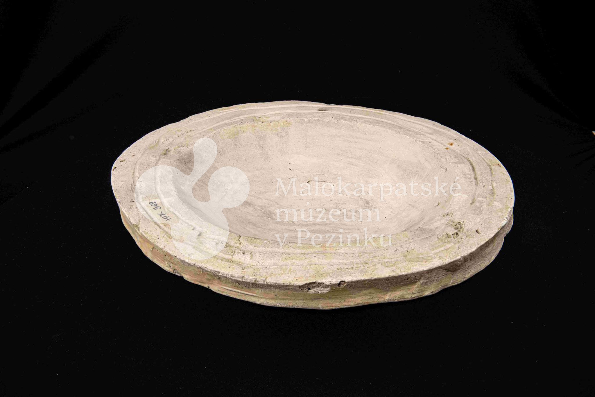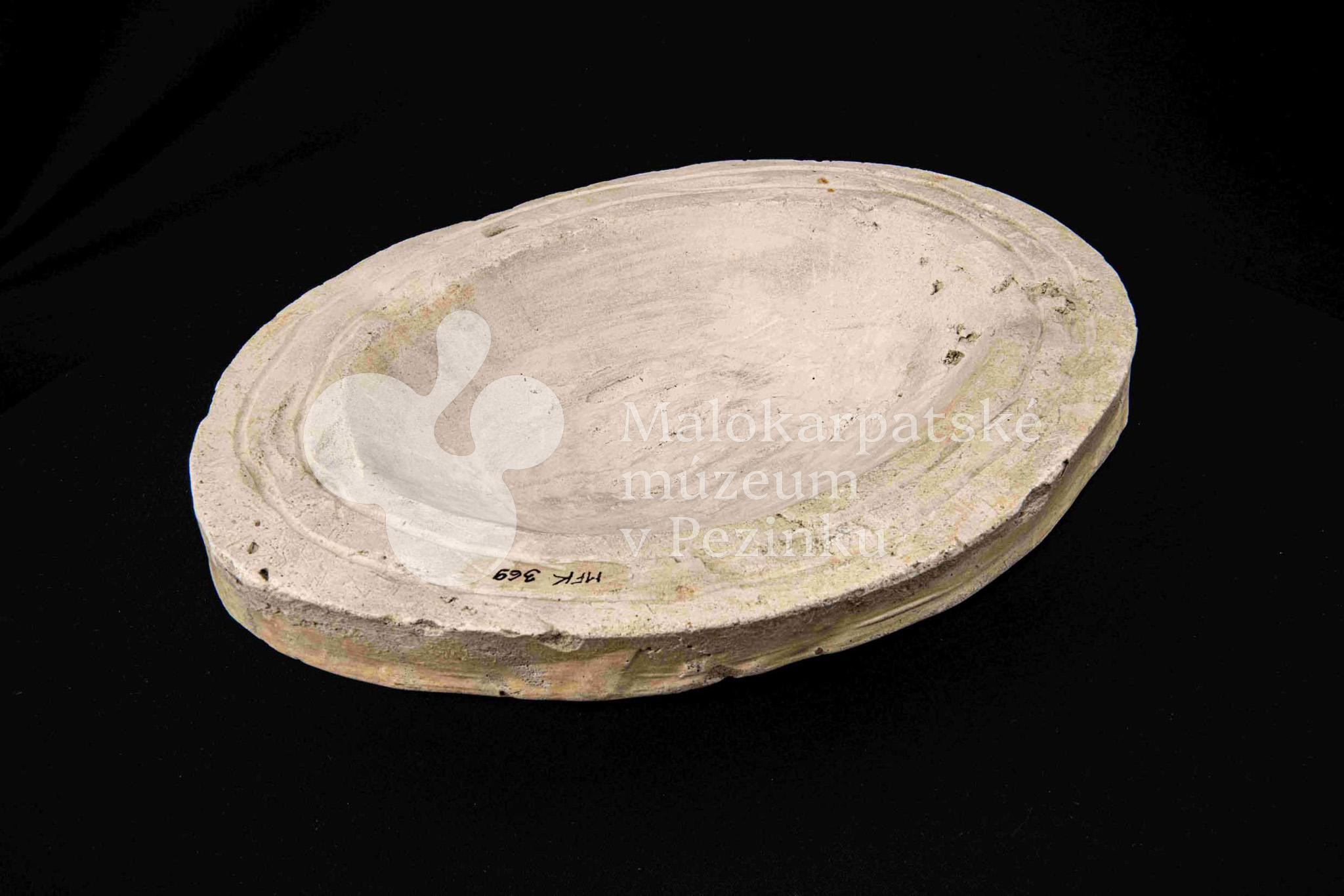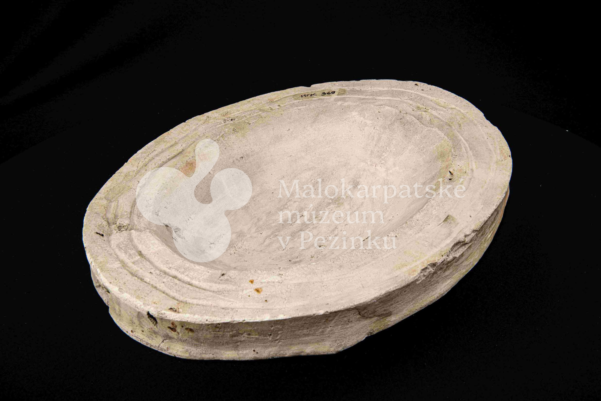 Sadrová forma oválna na hlbokú tvarovanú misu, s plastickým dekorom. Bez značenia.