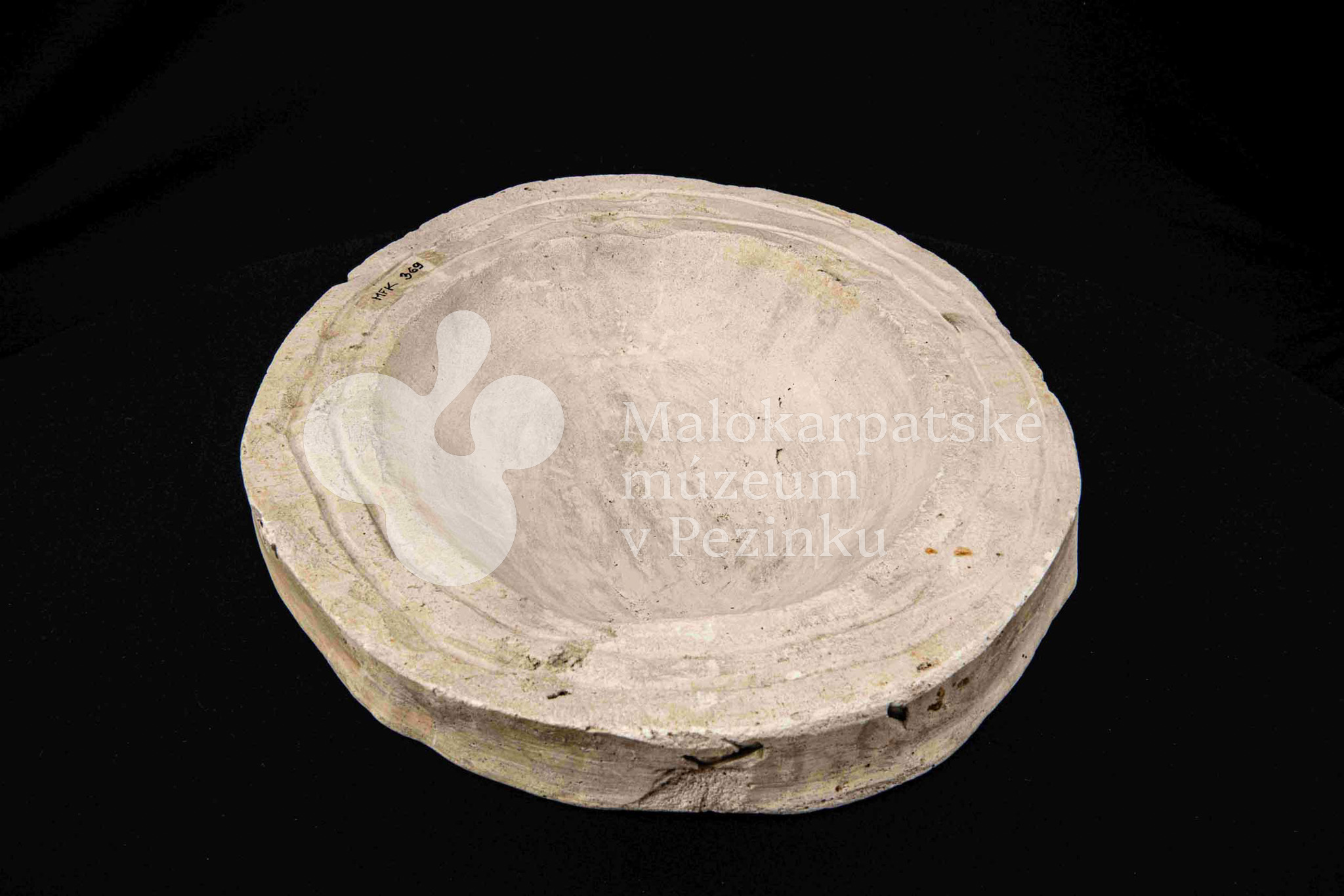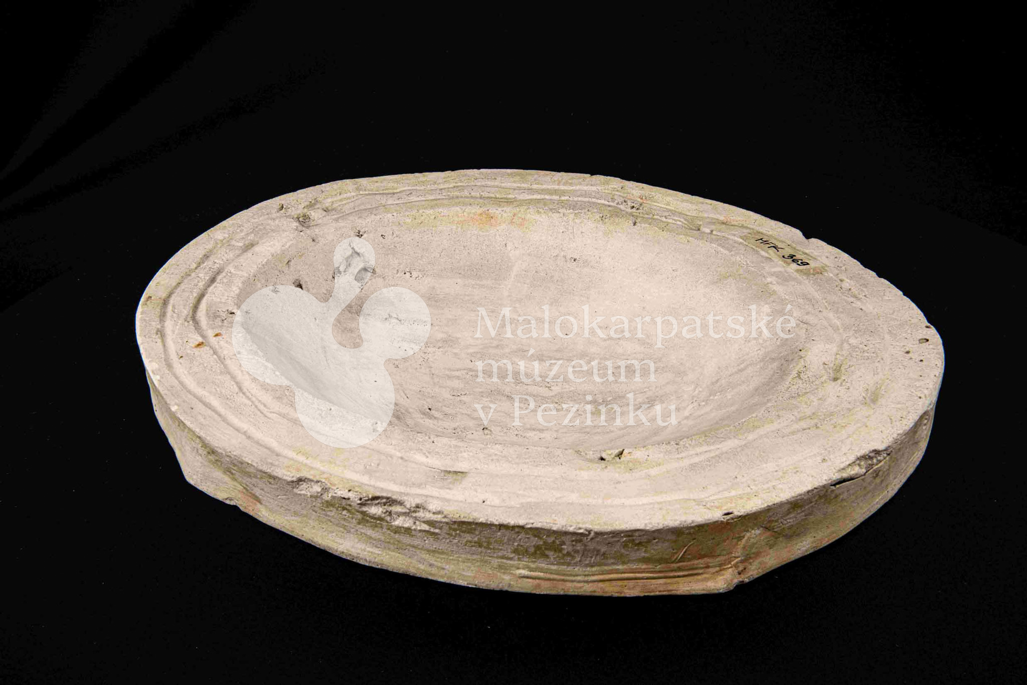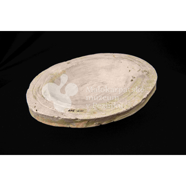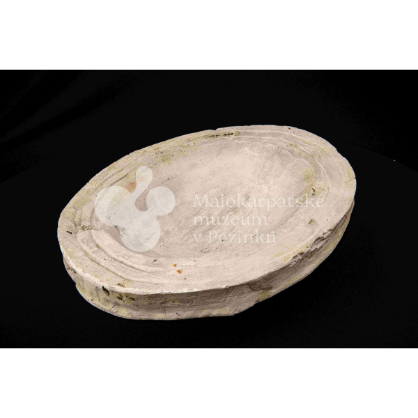 Sadrová forma oválna na hlbokú tvarovanú misu, s plastickým dekorom. Bez značenia.
