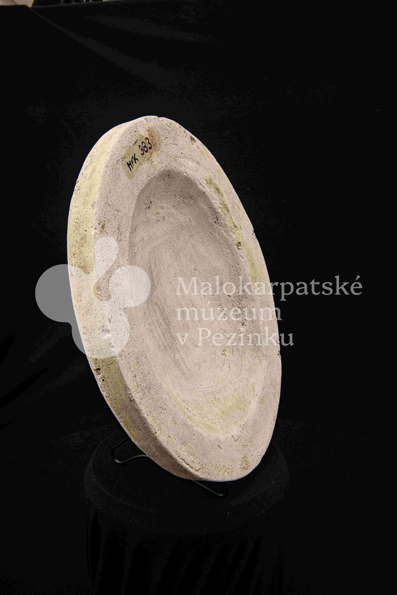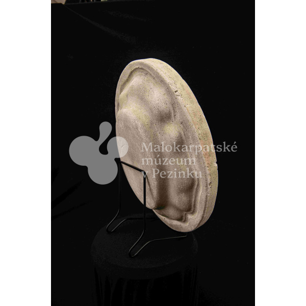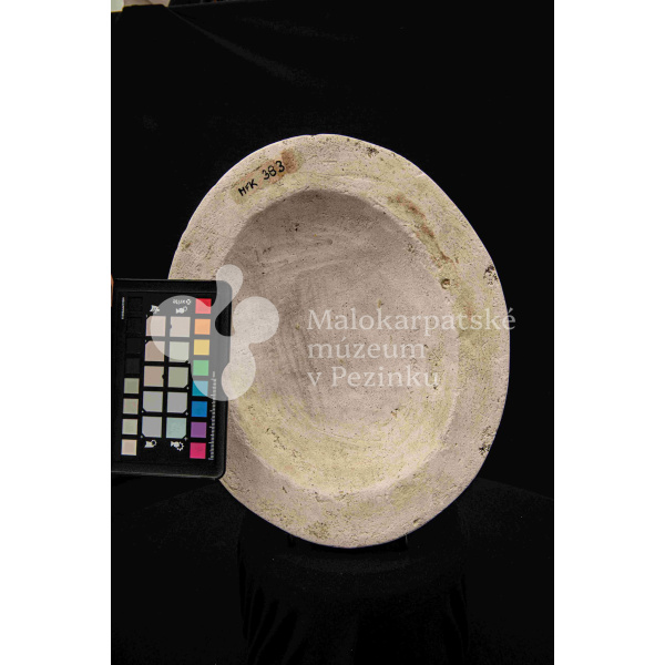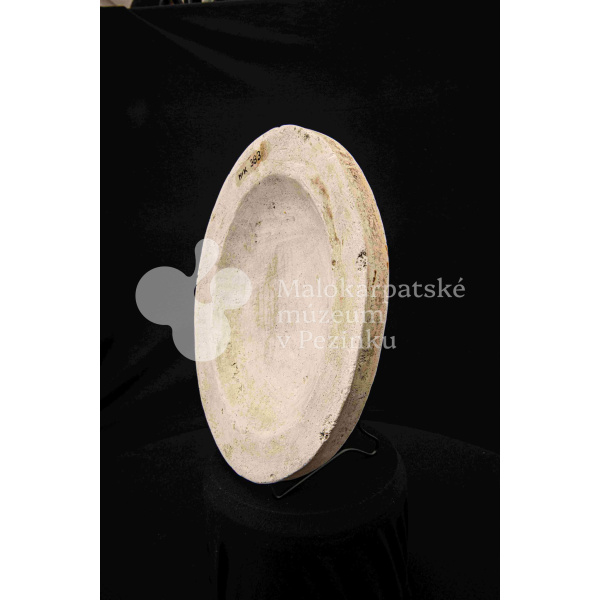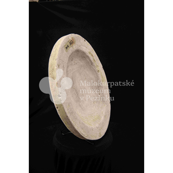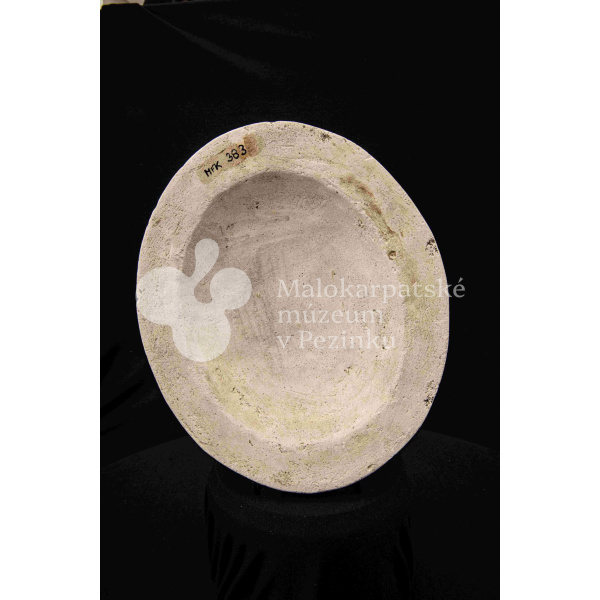 Sadrová forma plochá na oválnu misu s vlnovitým okrajom. Bez značenia.