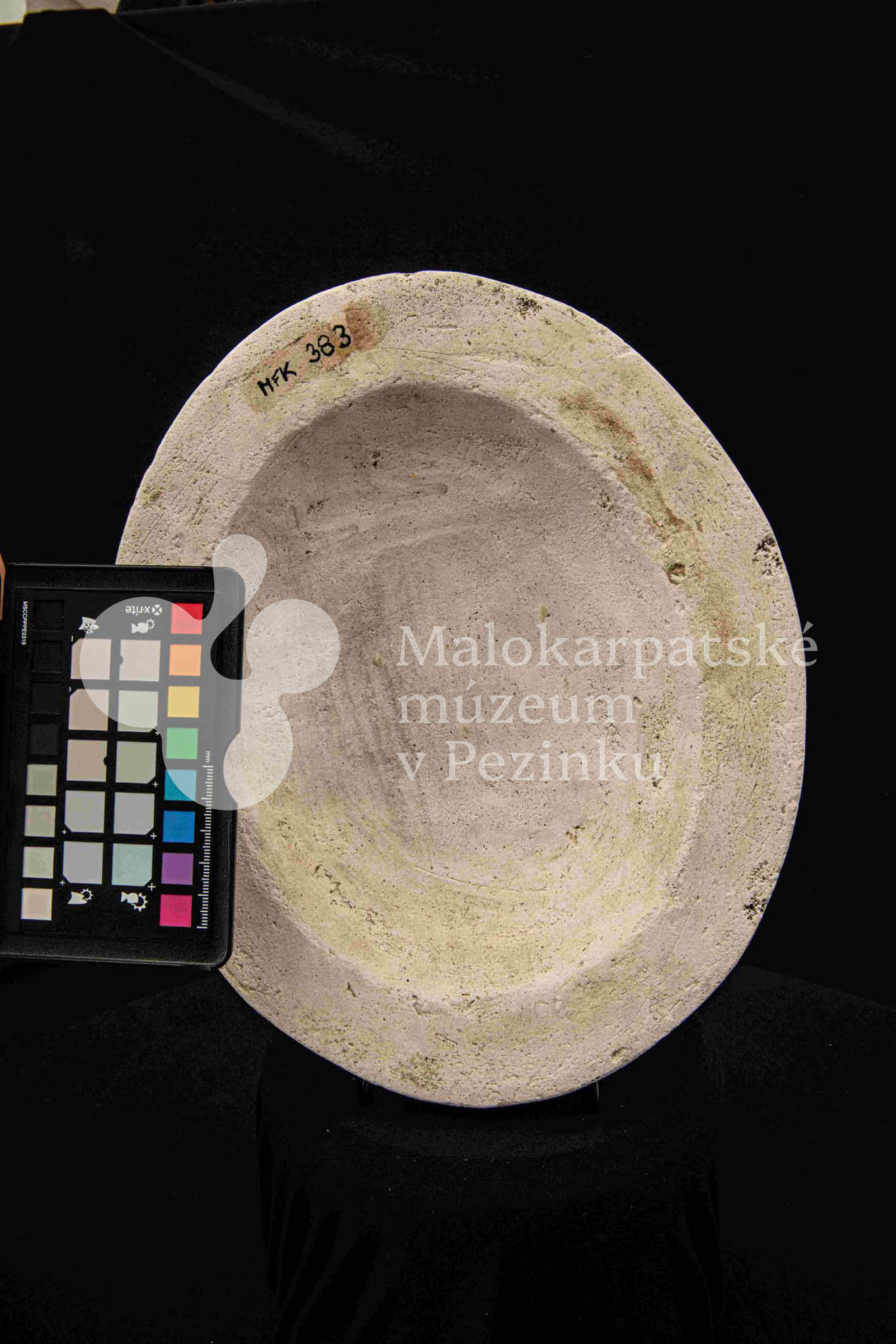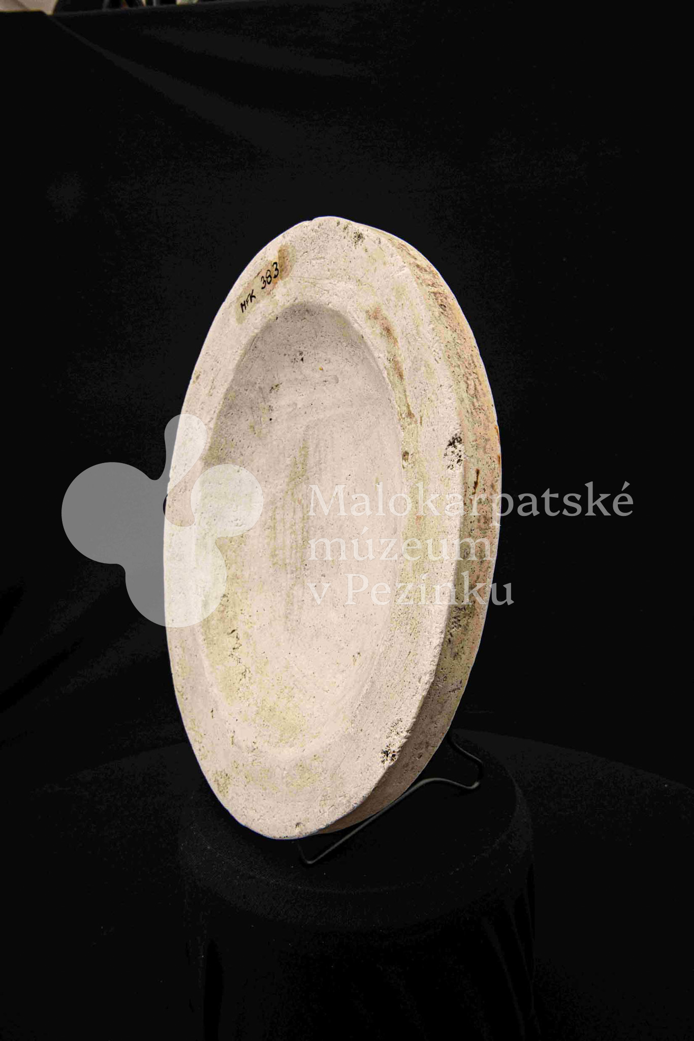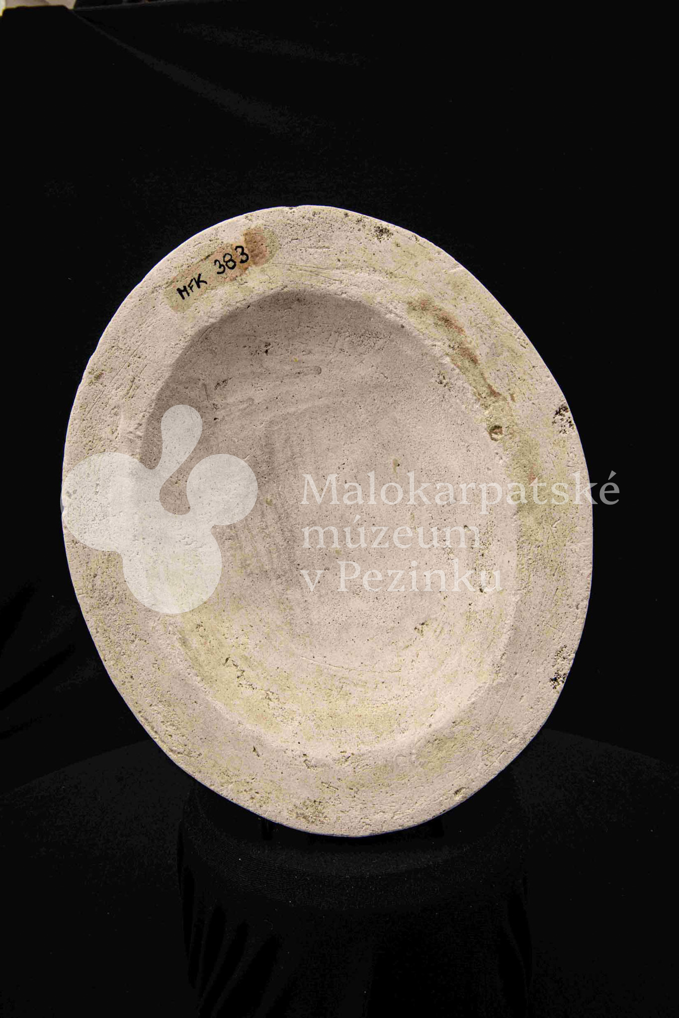 Sadrová forma plochá na oválnu misu s vlnovitým okrajom. Bez značenia.