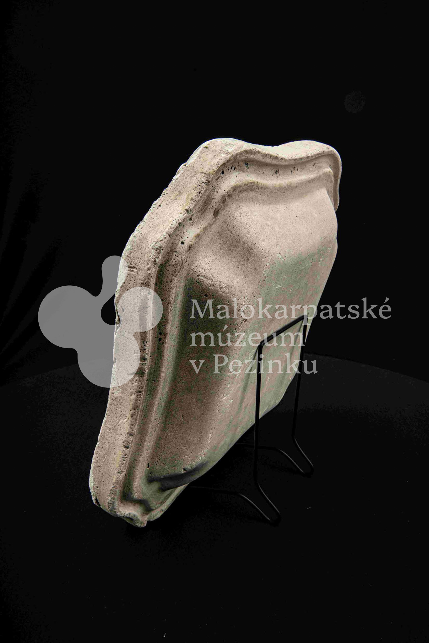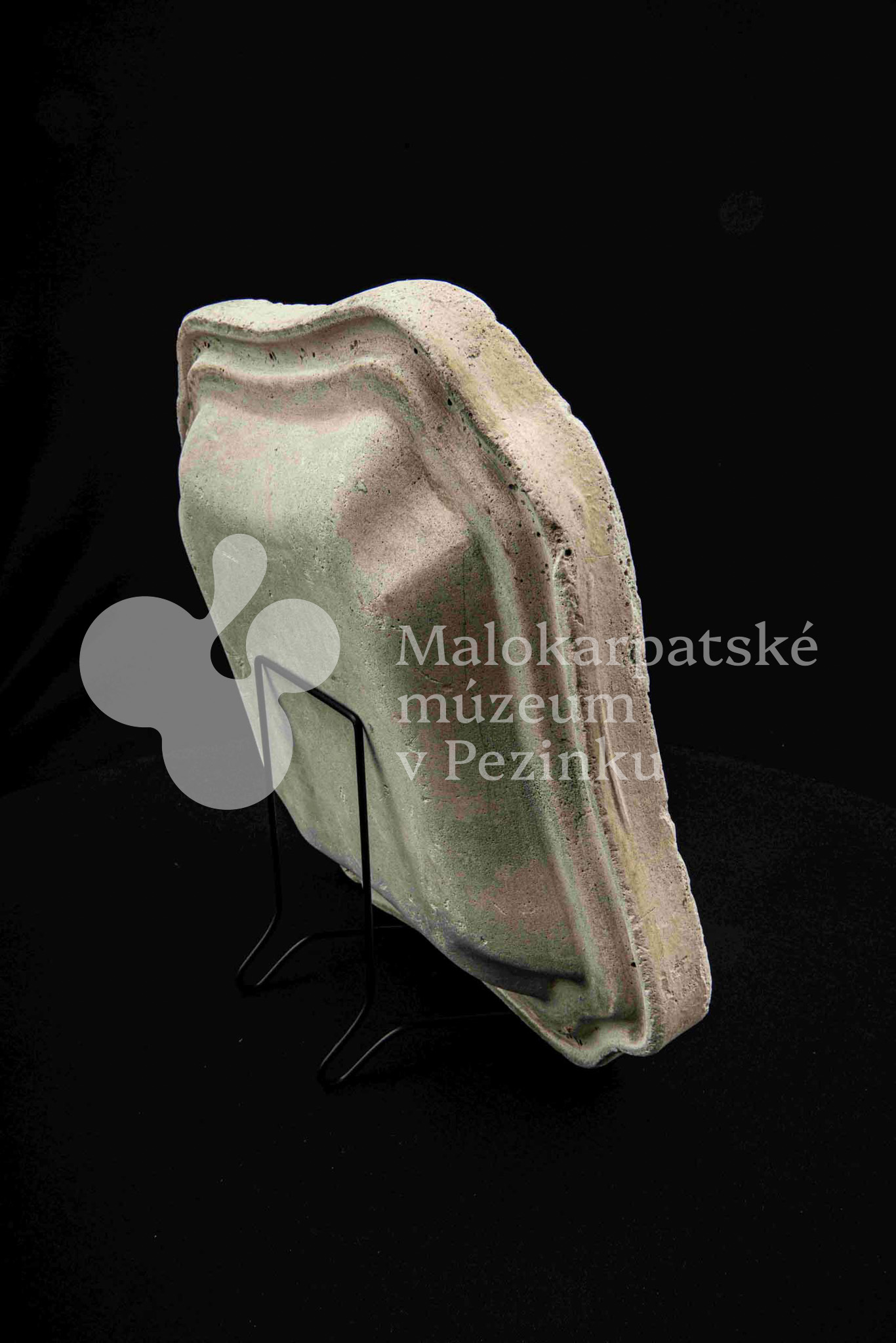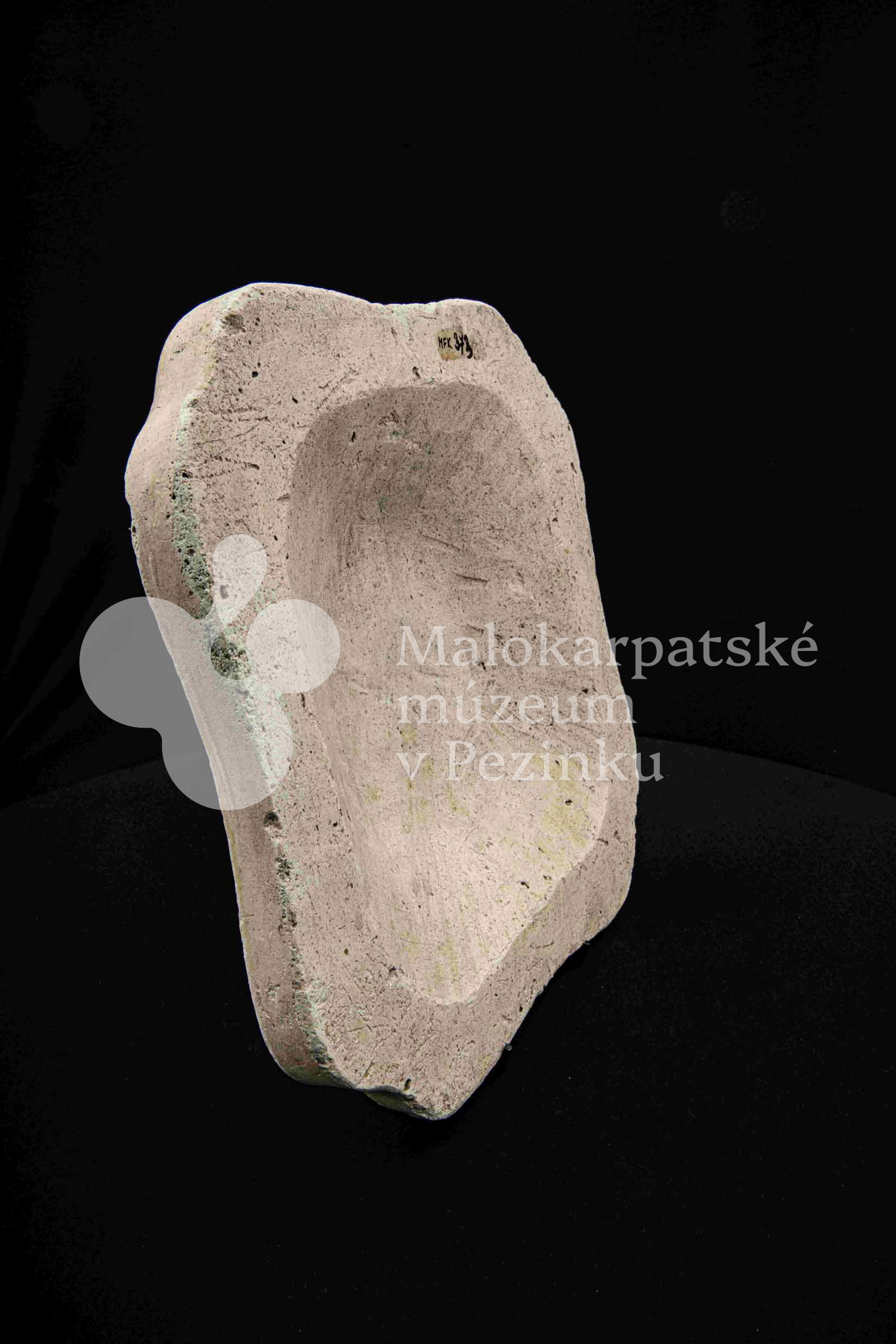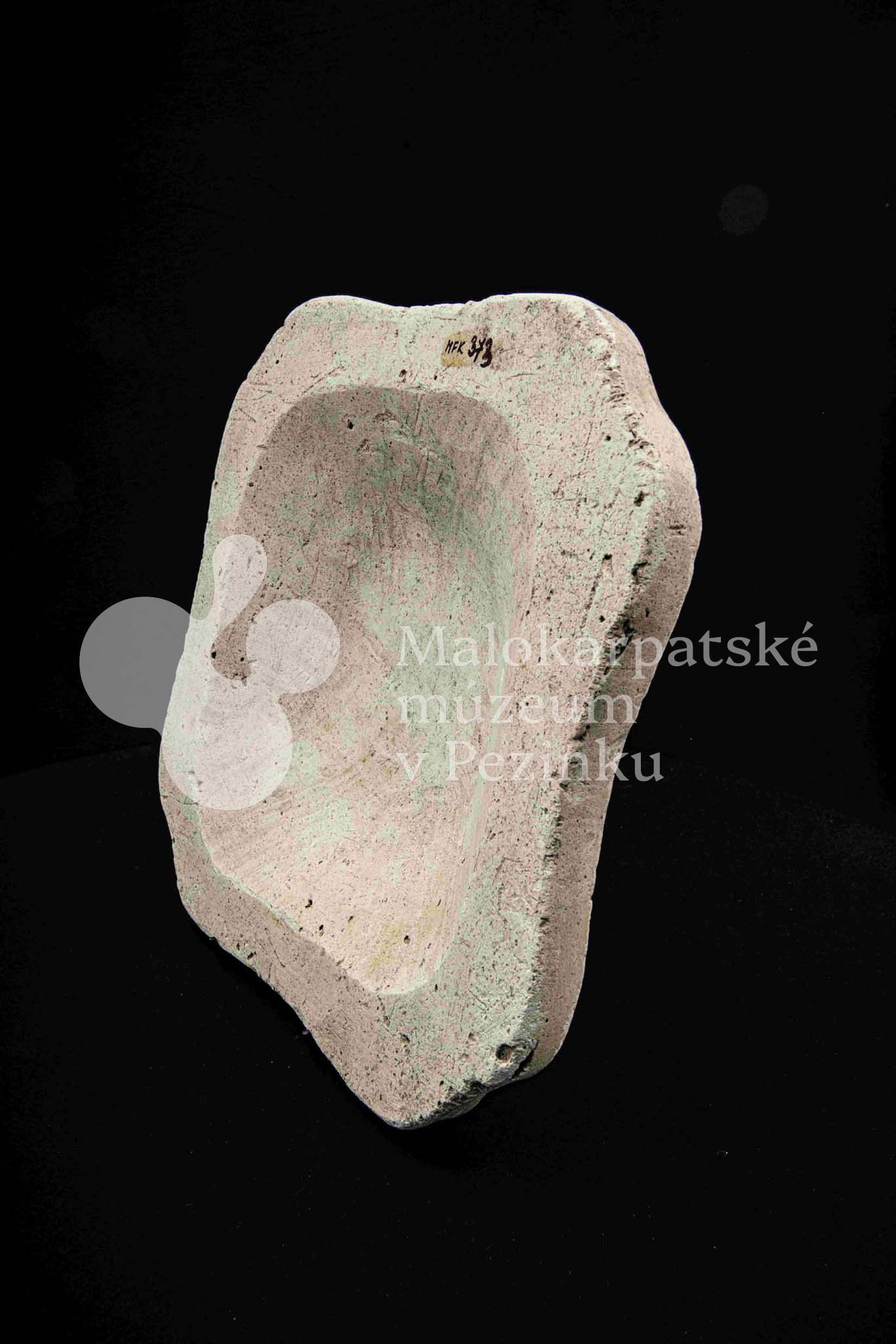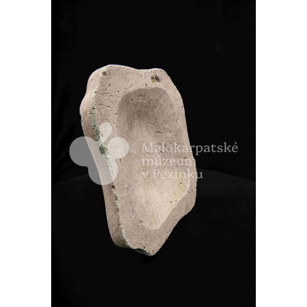 Sadrová forma na štvrohrannú hlbšiu misu, s tvarovaným okrajom. Bez značenia.