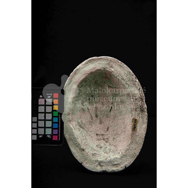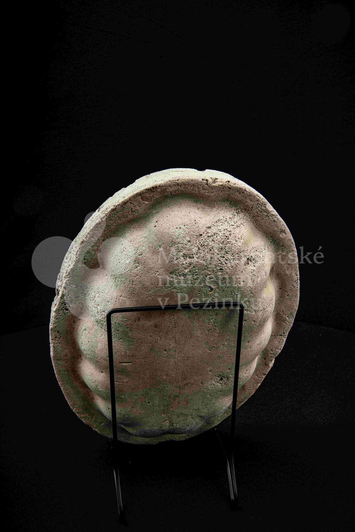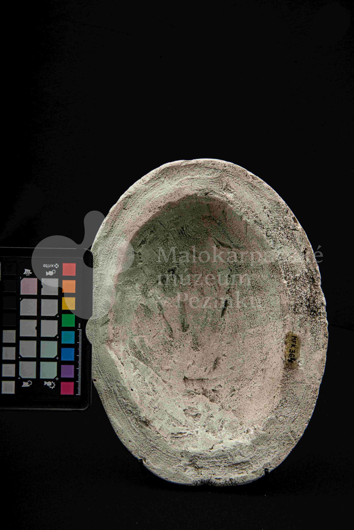 Dve sadrové formy s vlnovitým okrajom, na menšie ploché misky. Bez značenia.