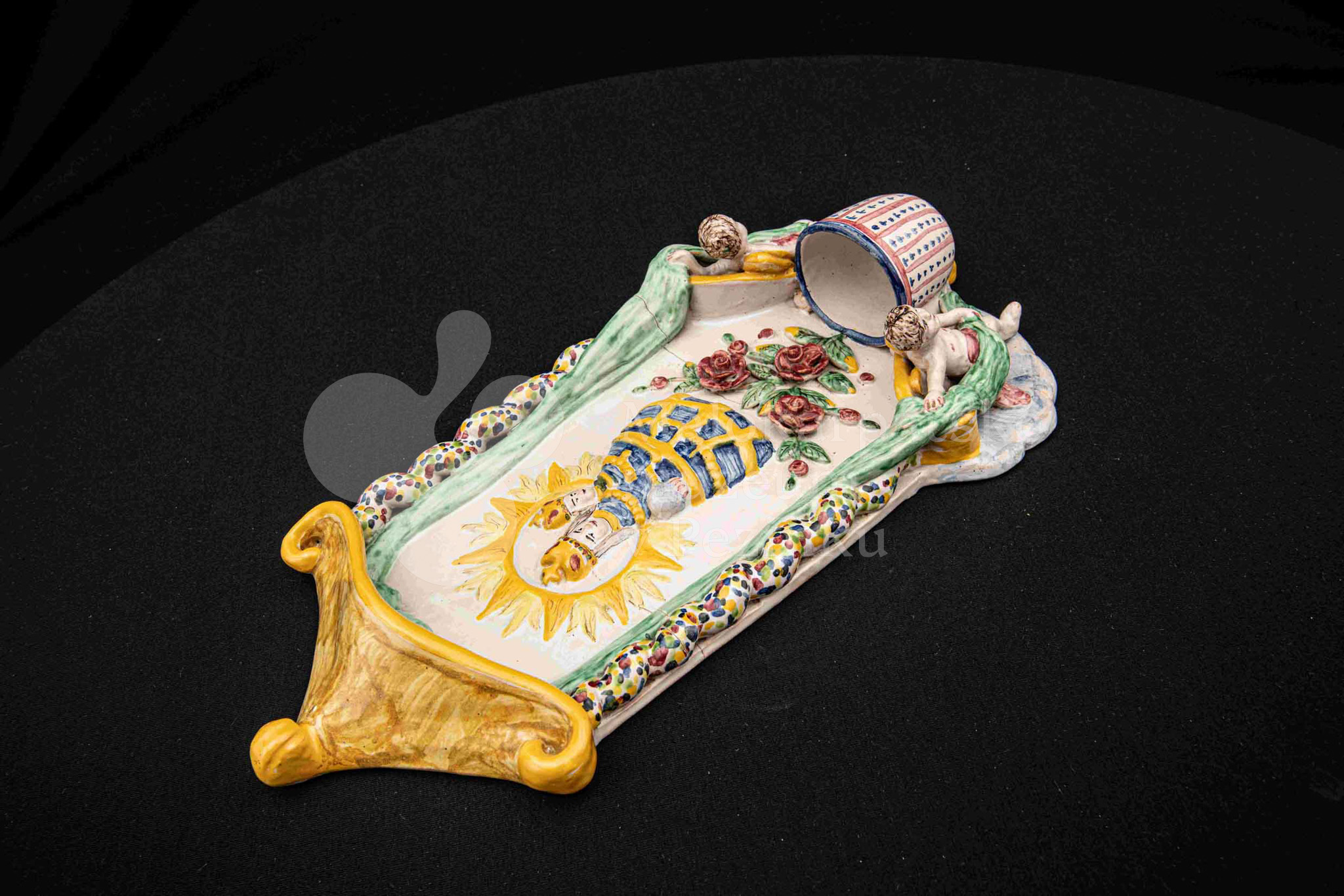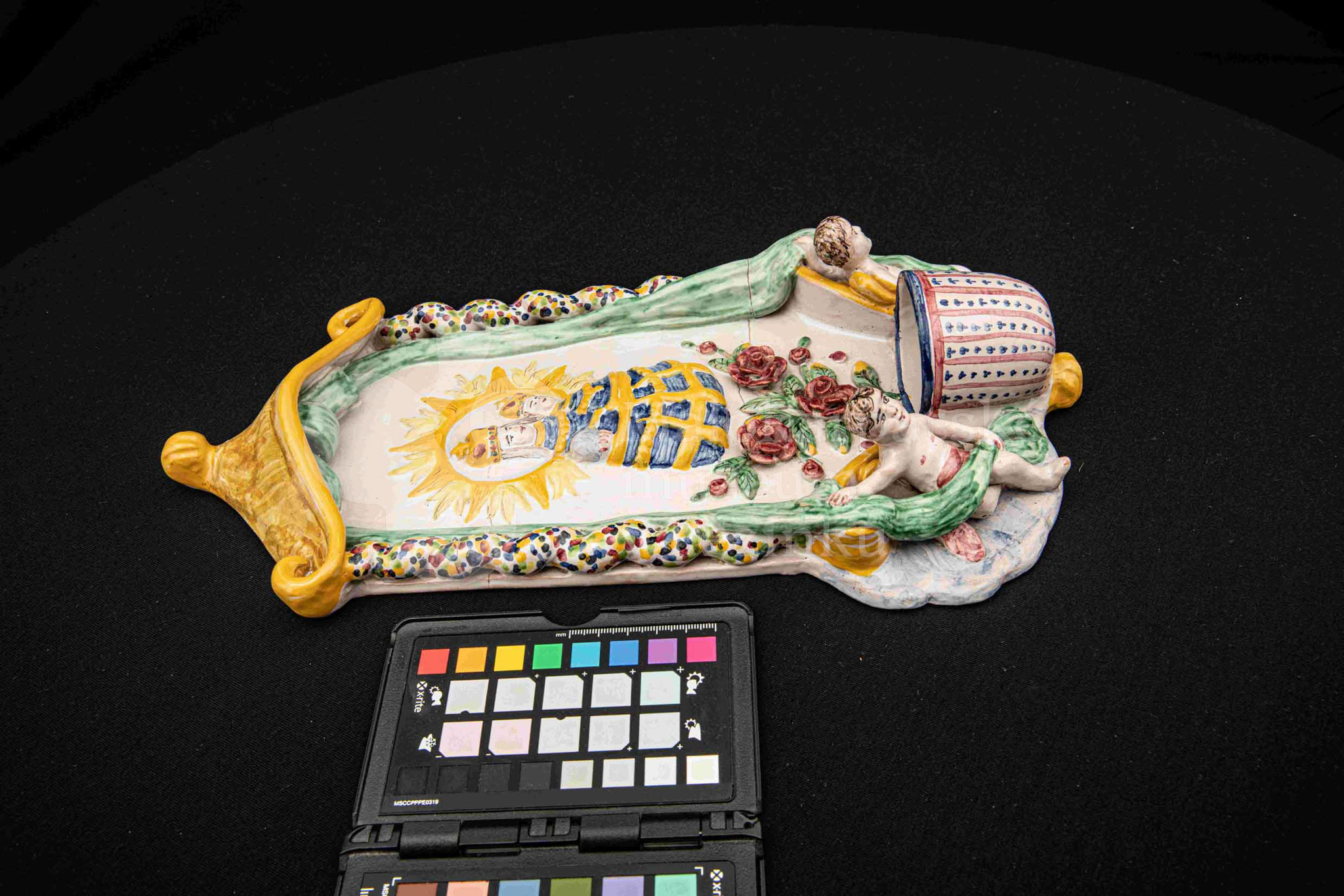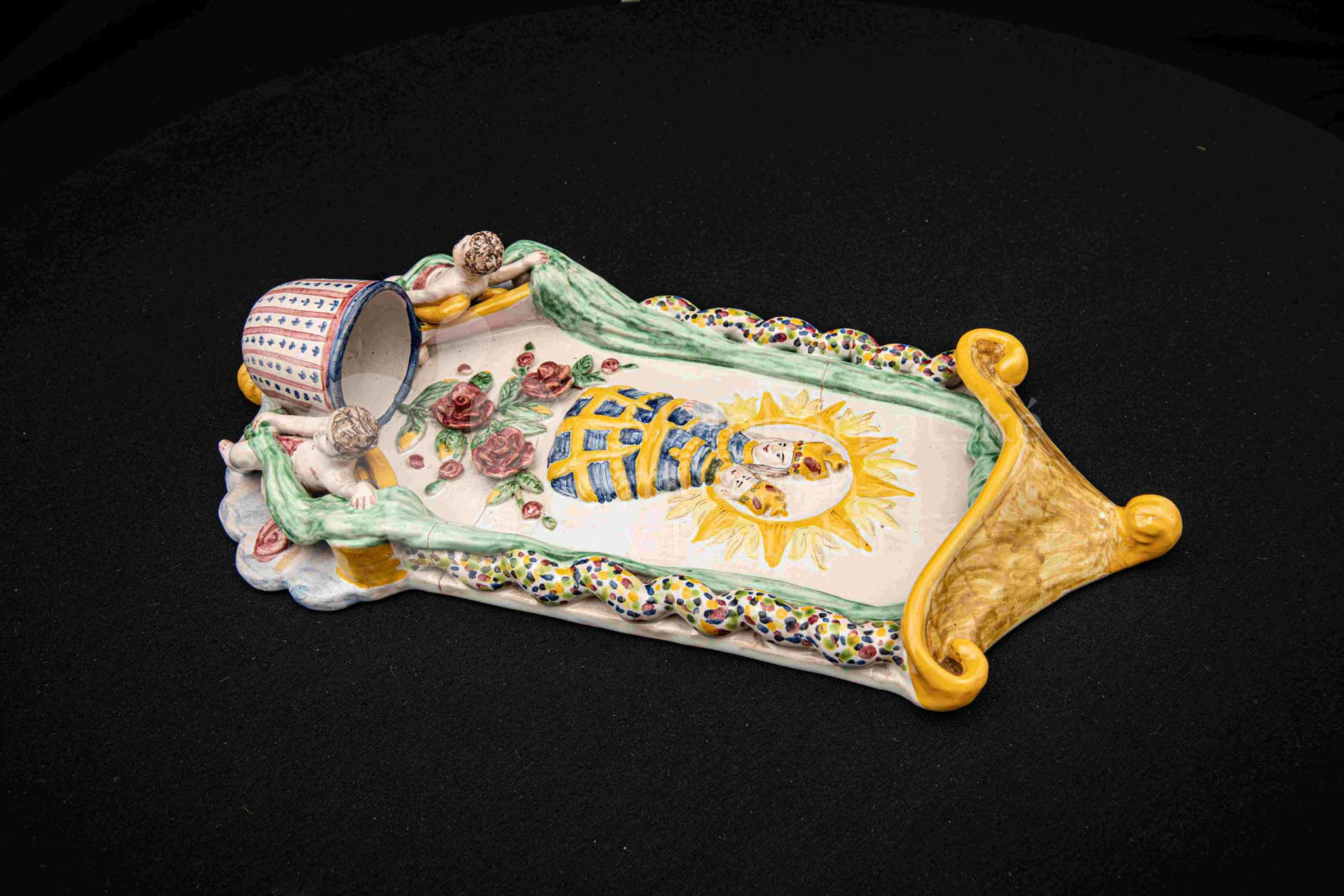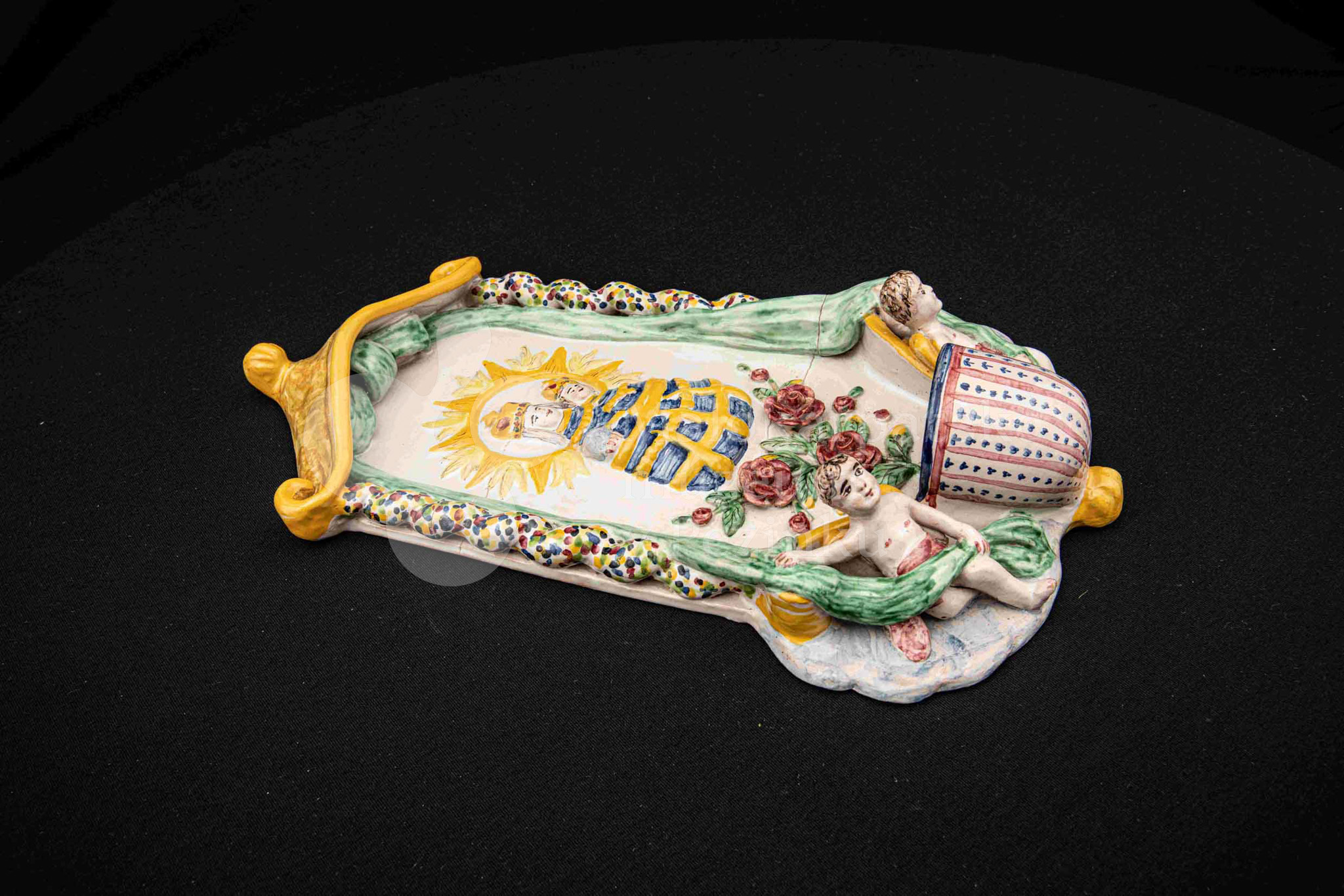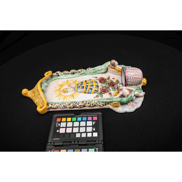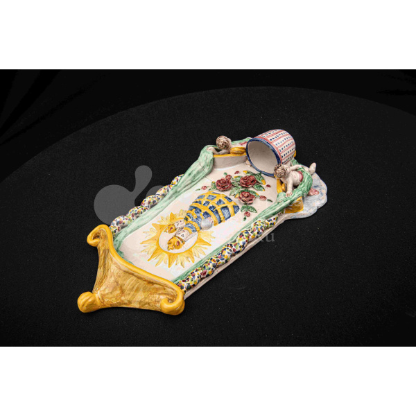 Závesná kaplička – večné svetlo, fajansový reliéf, dielo Ferdiša Kostku z r. 1948, v. 36 cm