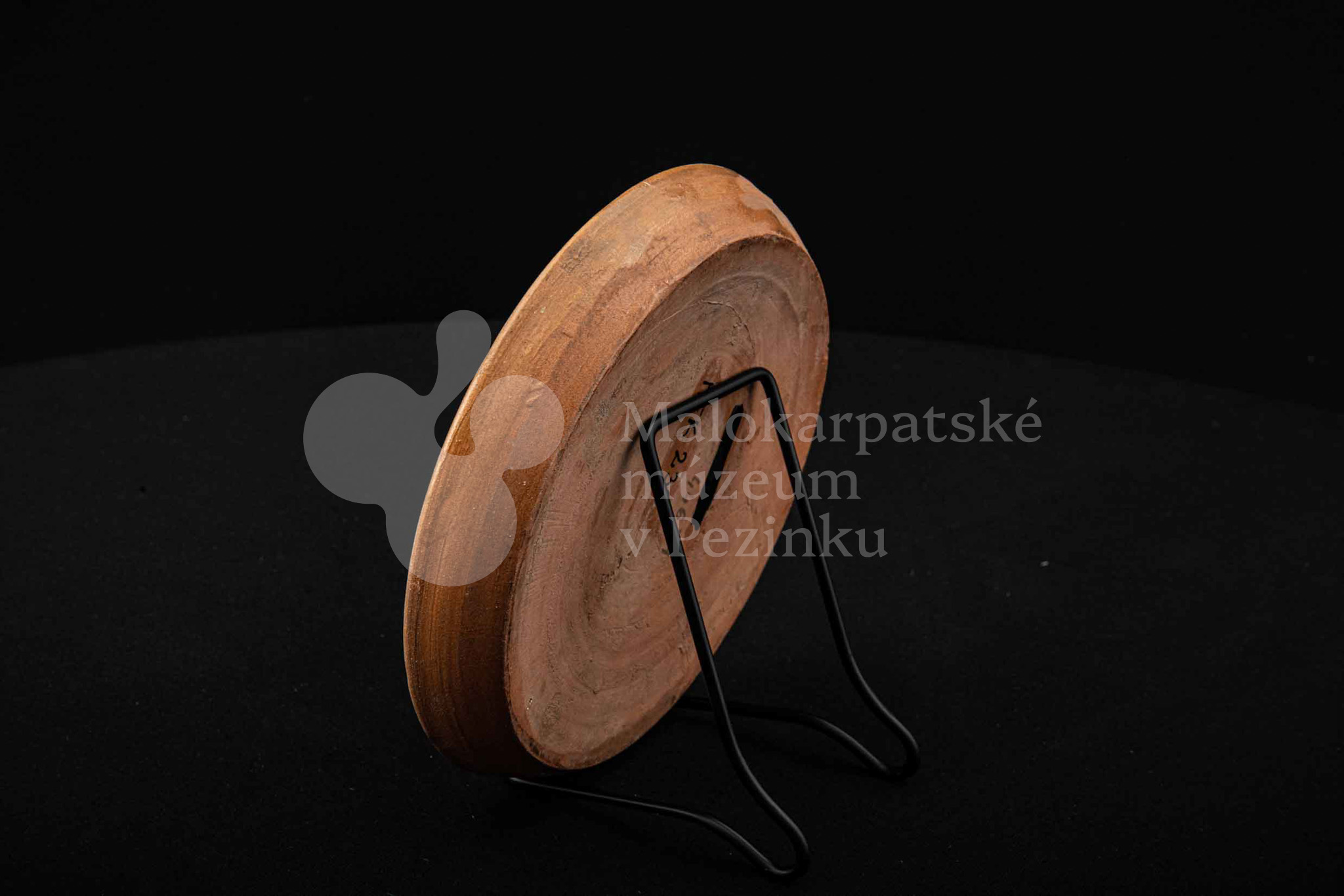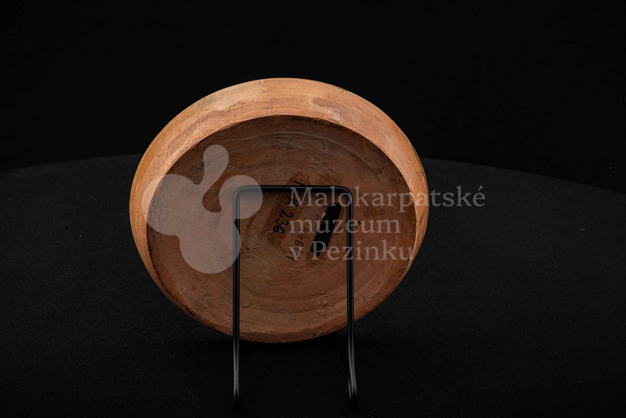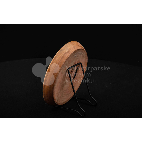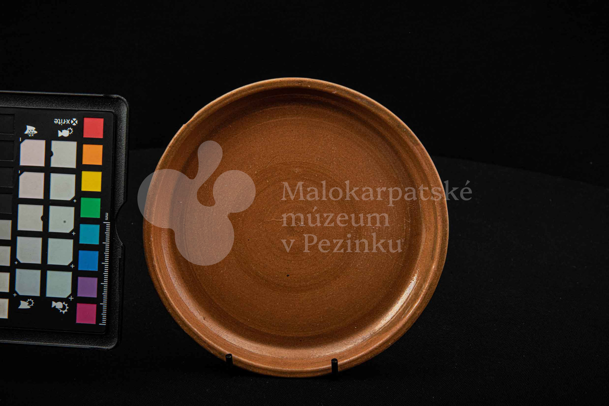 Miska keramická, pod kvetináč, glejtovaná, hnedej farby. Má rovný okraj, bez značenia.