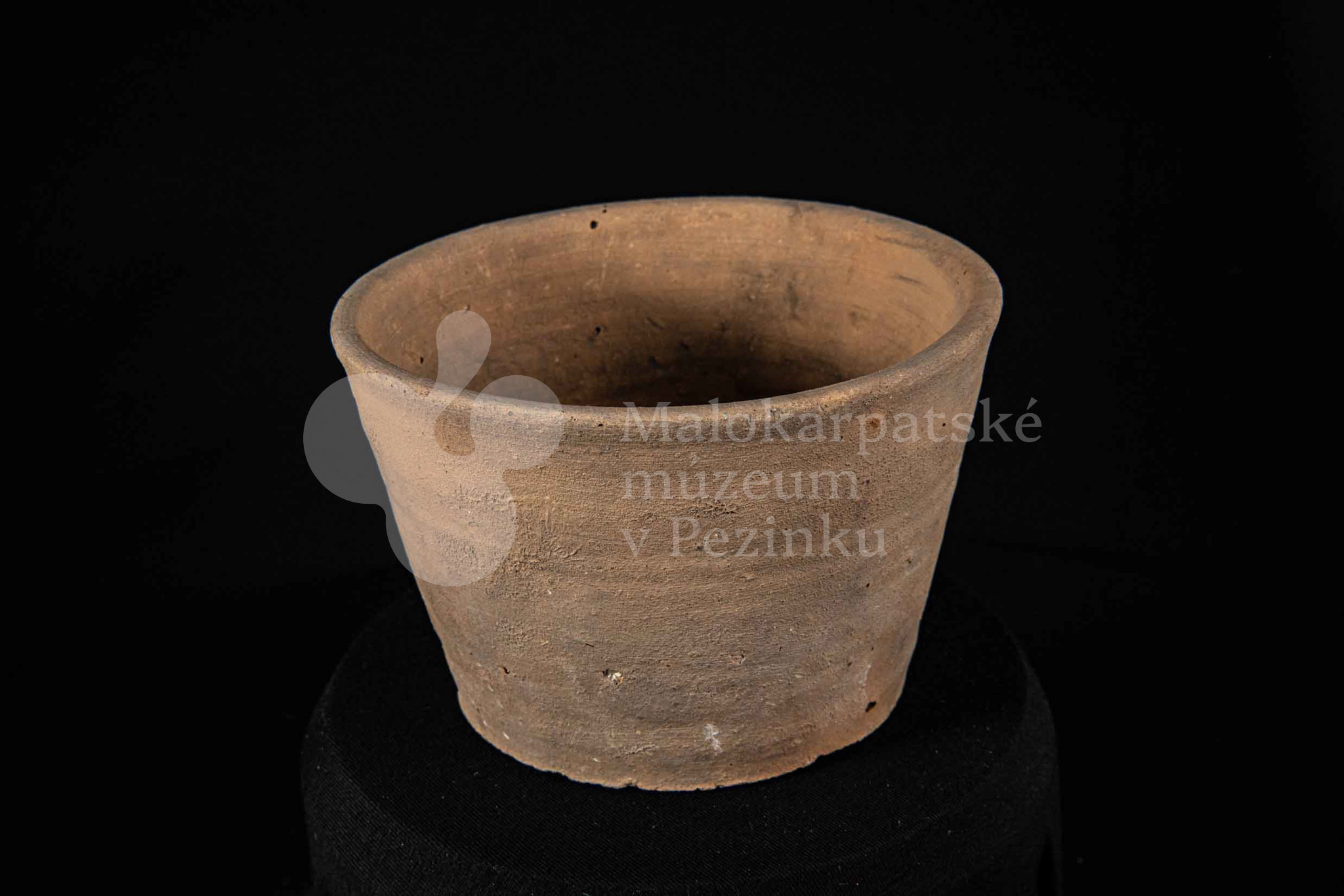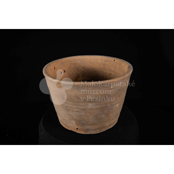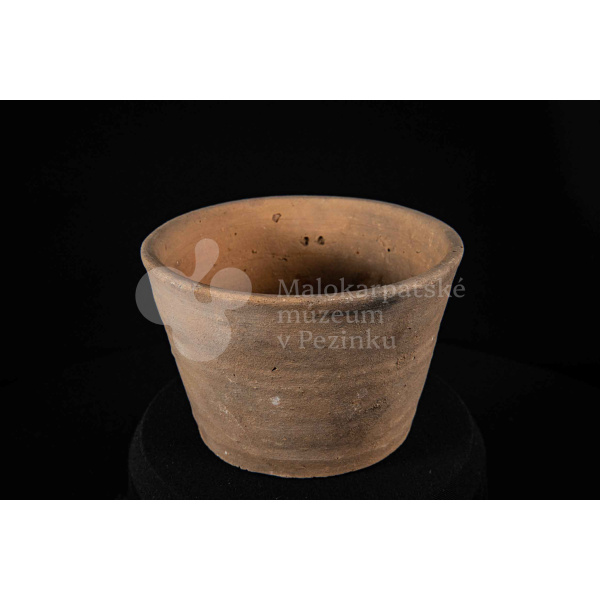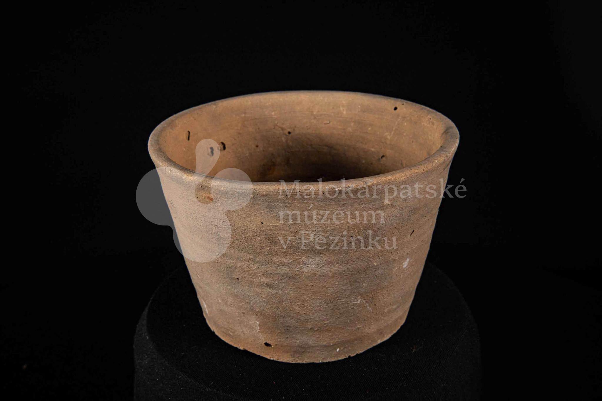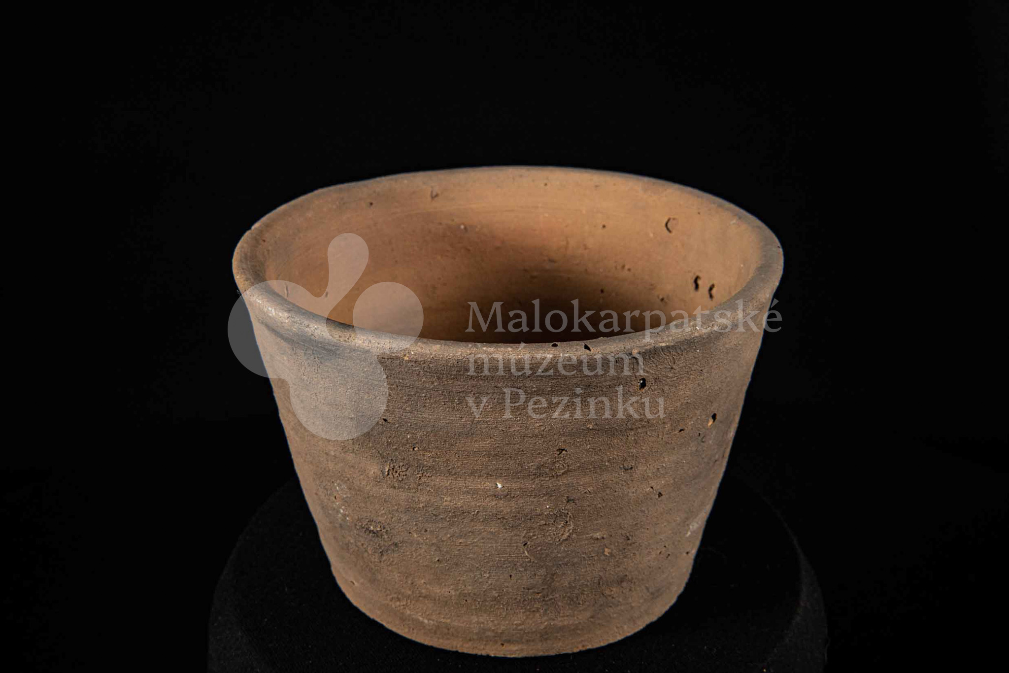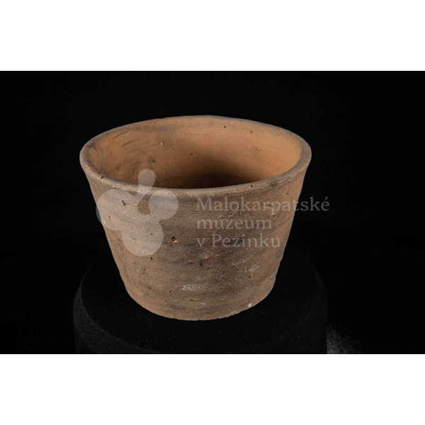 Nádoba keramická – pernica z pálenej hliny, bez označenia. Hore mierne rozšírená.
