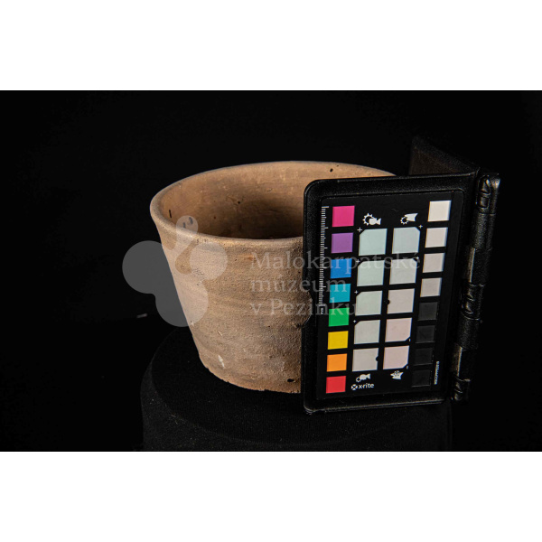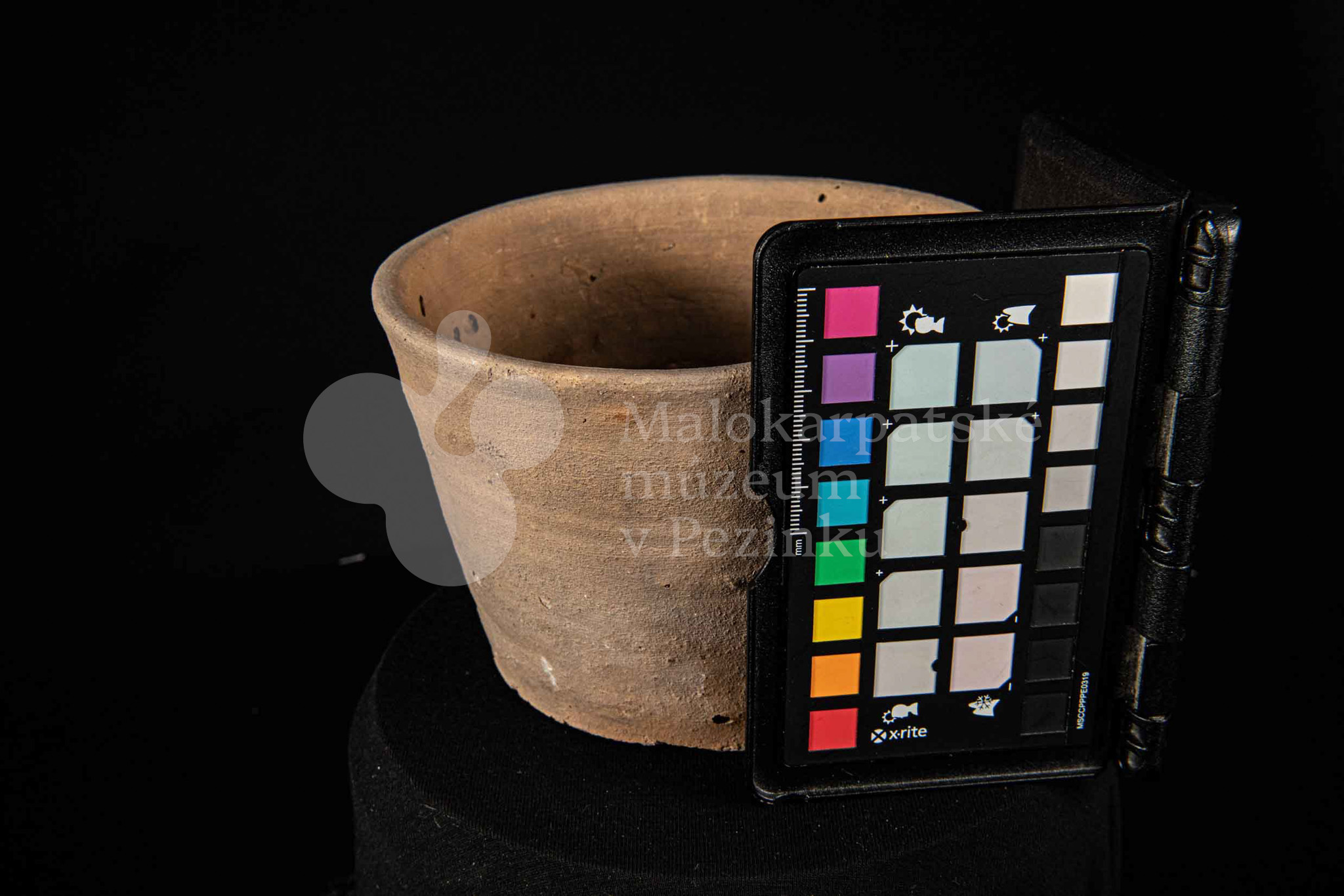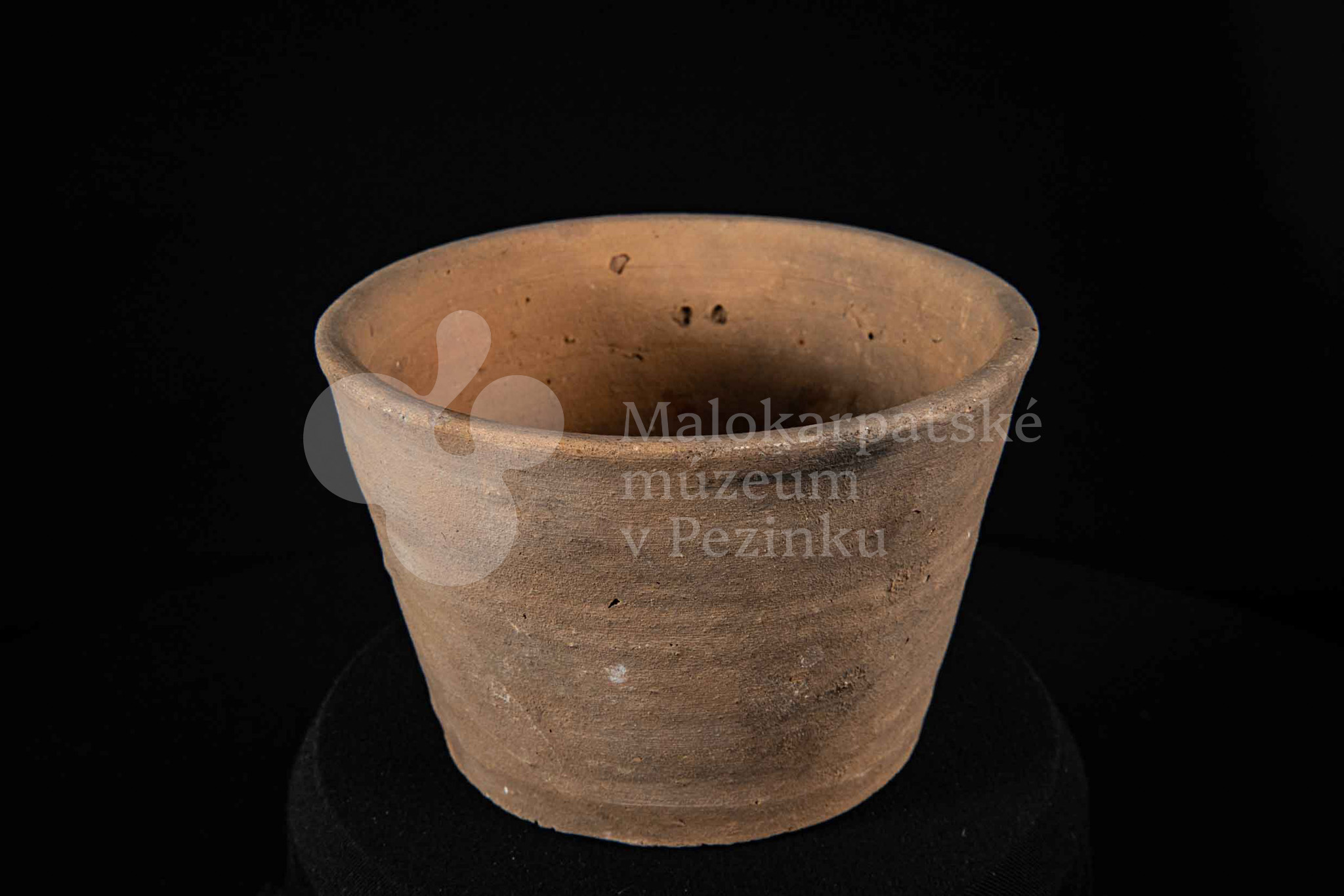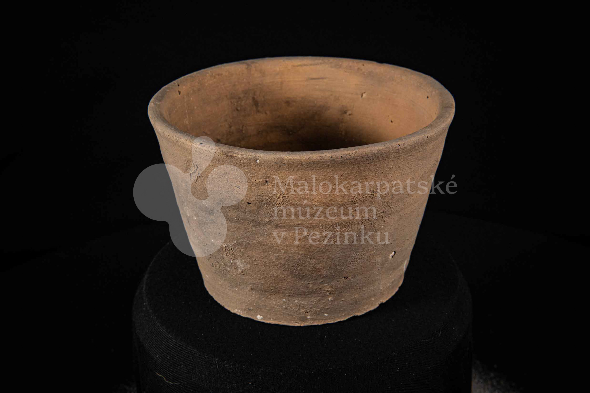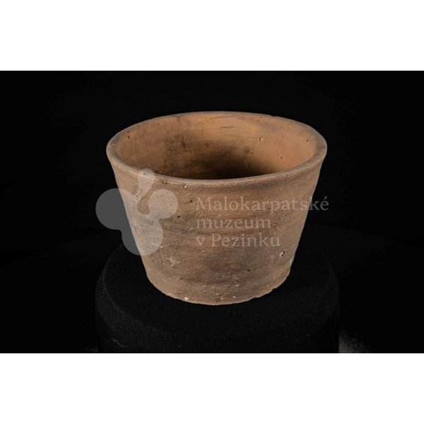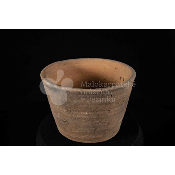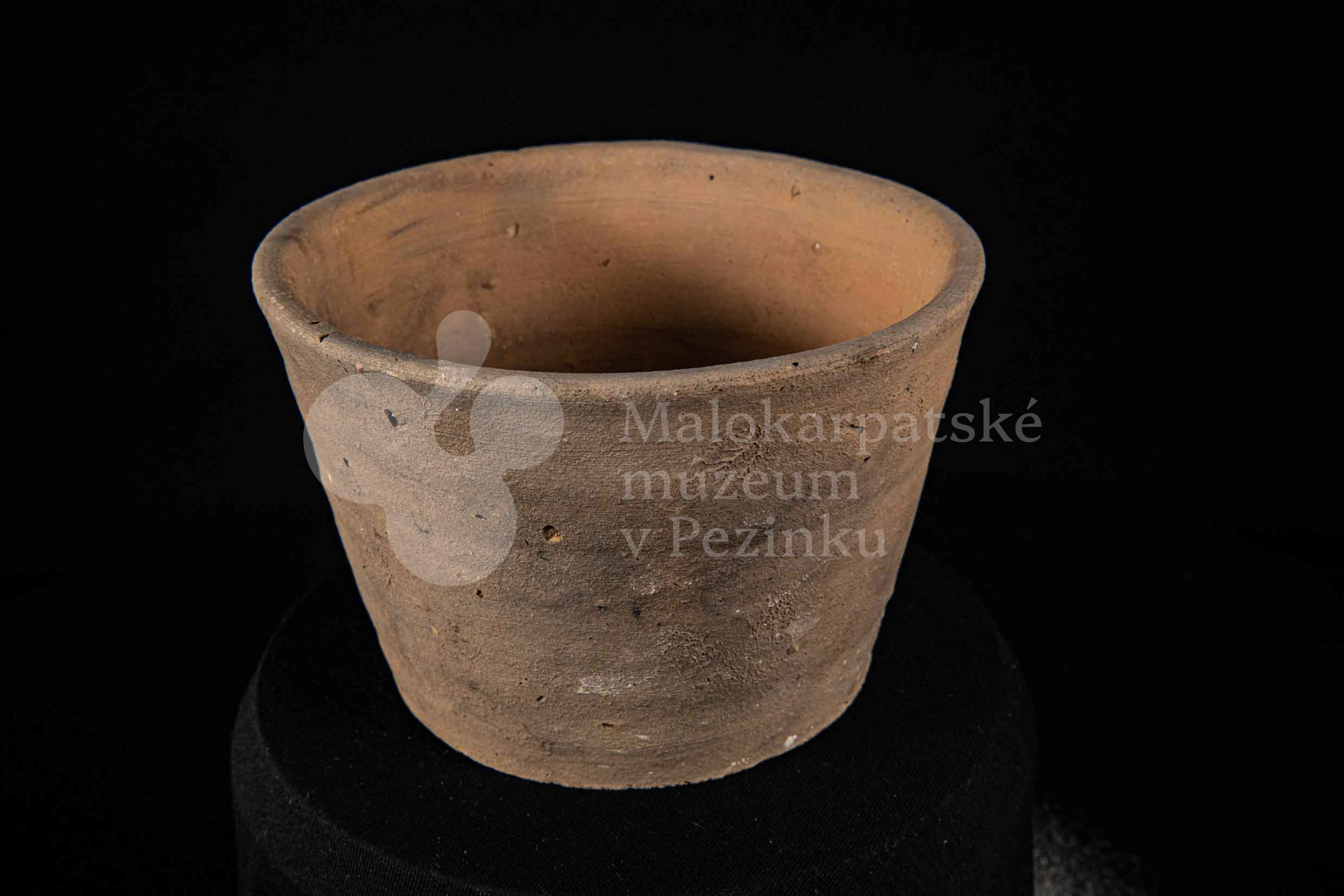Nádoba keramická – pernica z pálenej hliny, bez označenia. Hore mierne rozšírená.