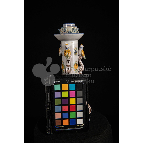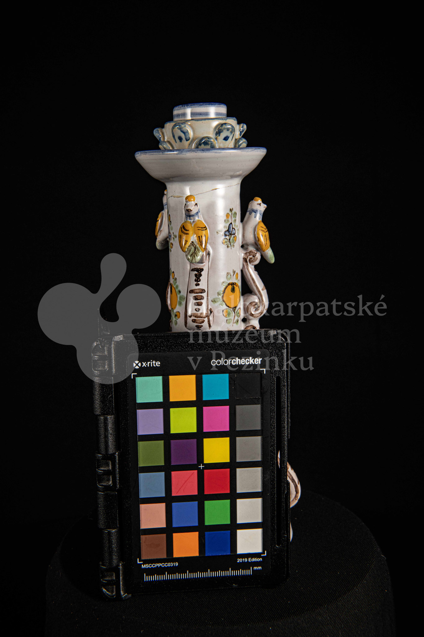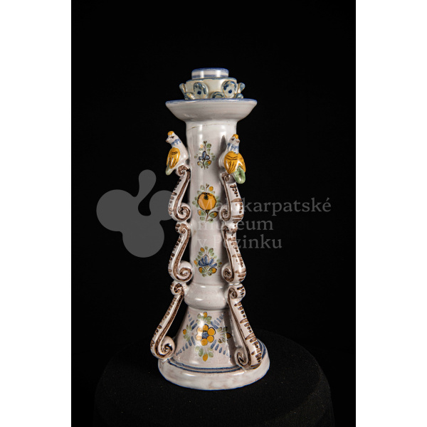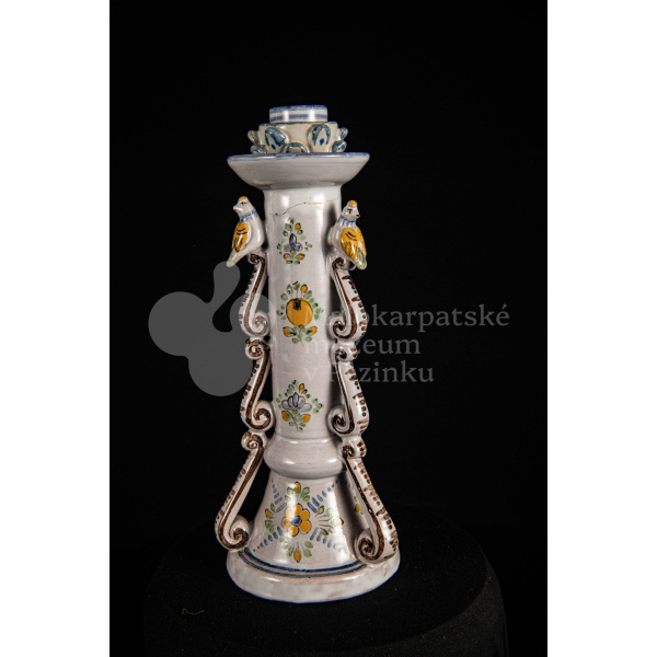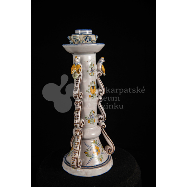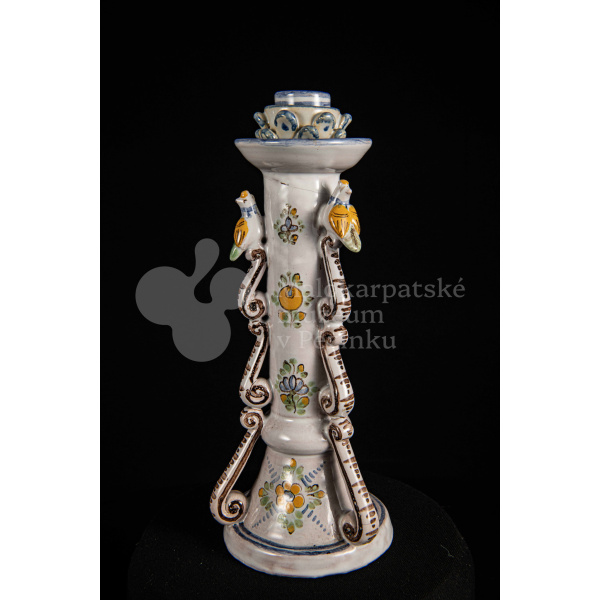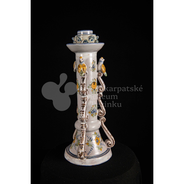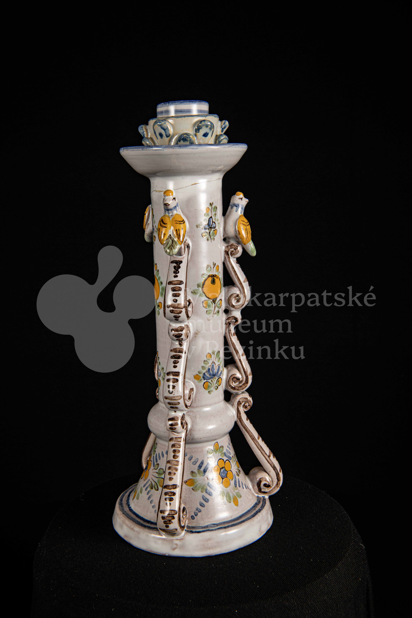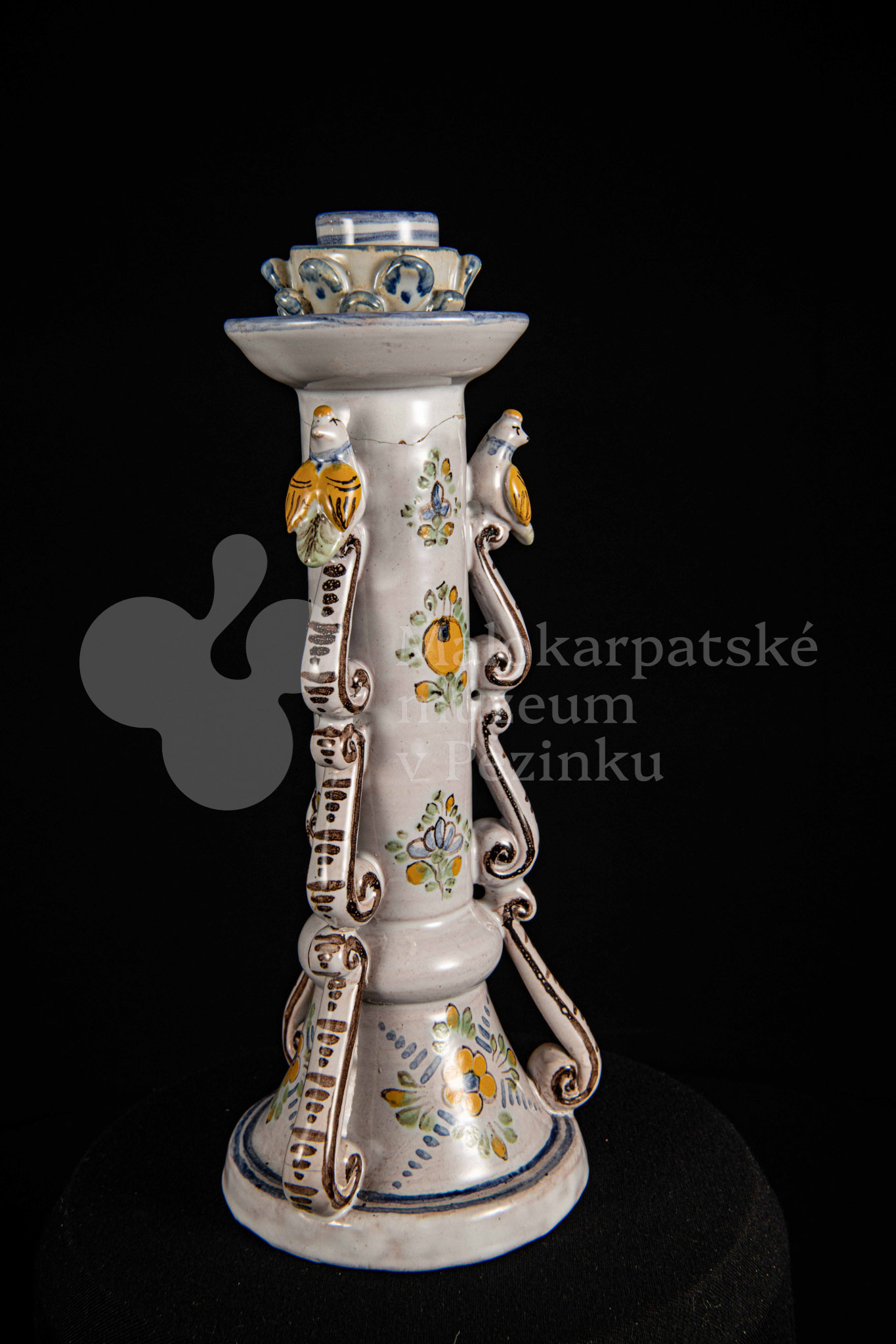Svietnik fajansový – zvaný „vtáčkový“, má plastickú výzdobu pozostávajúcu z troch radov stĺpikov a troch vtáčkov. Po celej ploche bielo glazovaný s vysokožiarovým dekorom. Zvýraznená je farba mangánová. V hornej časti je poškodený a opravovaný. Bez značenia.