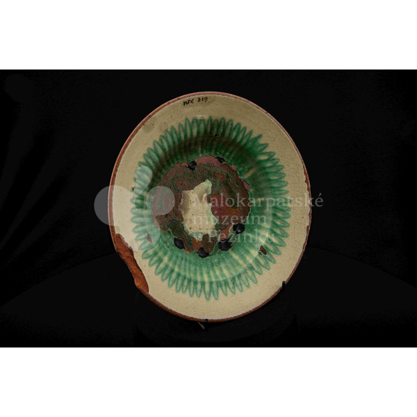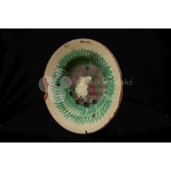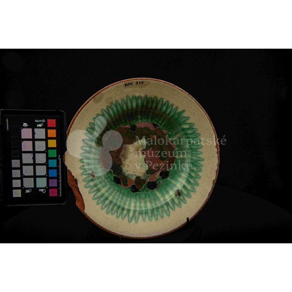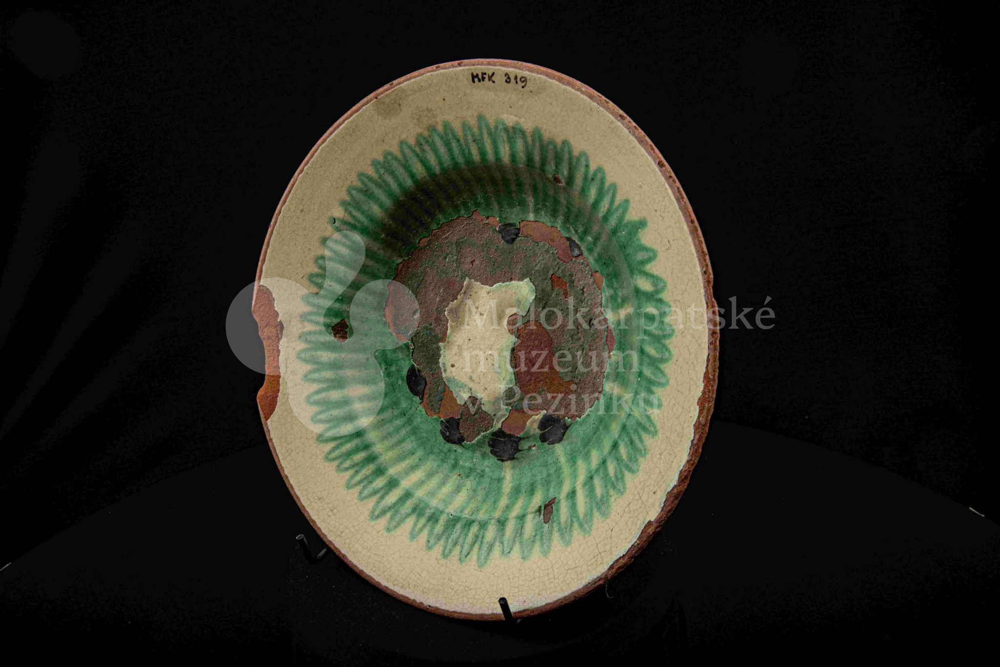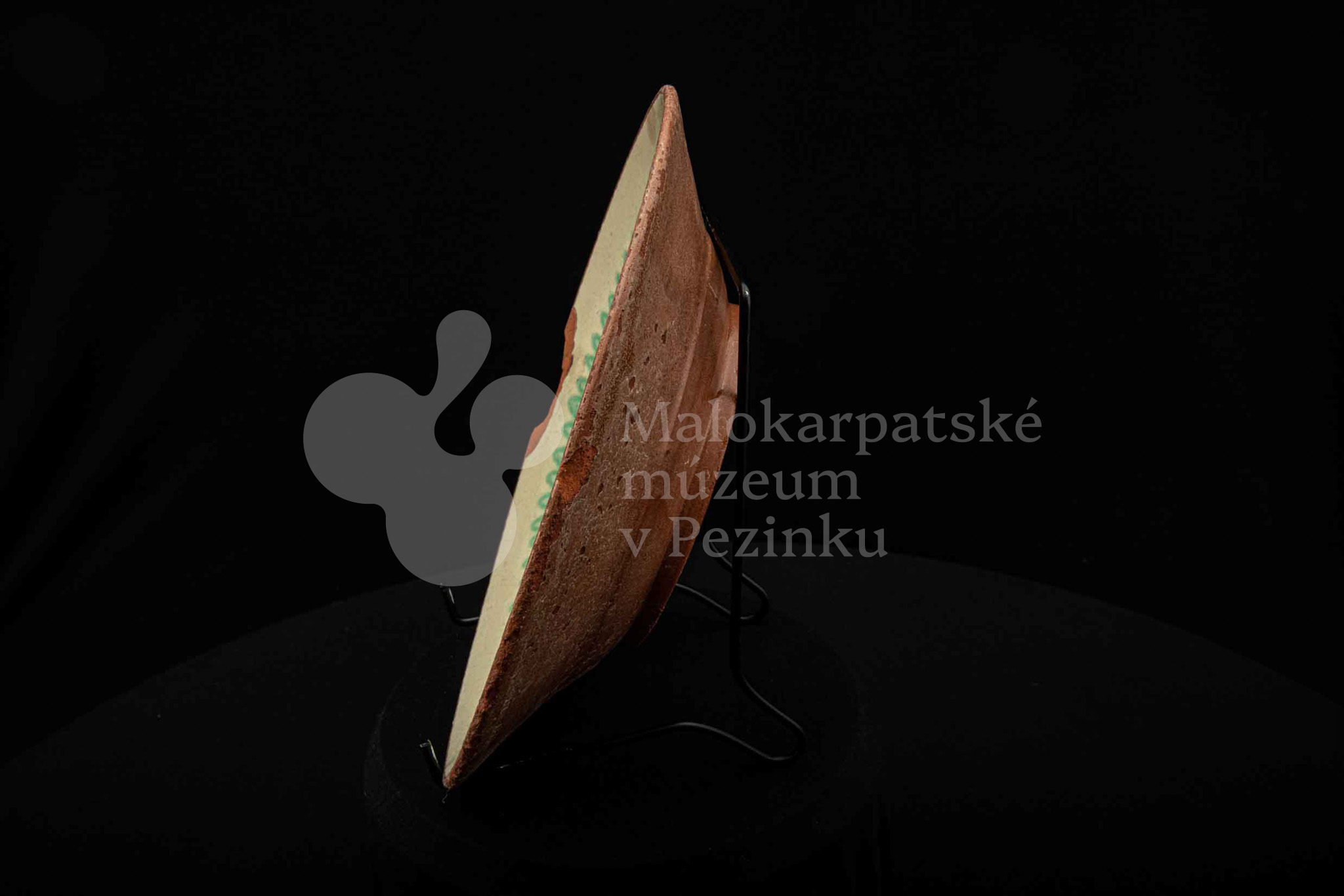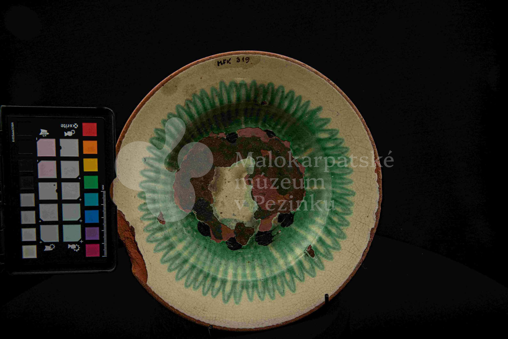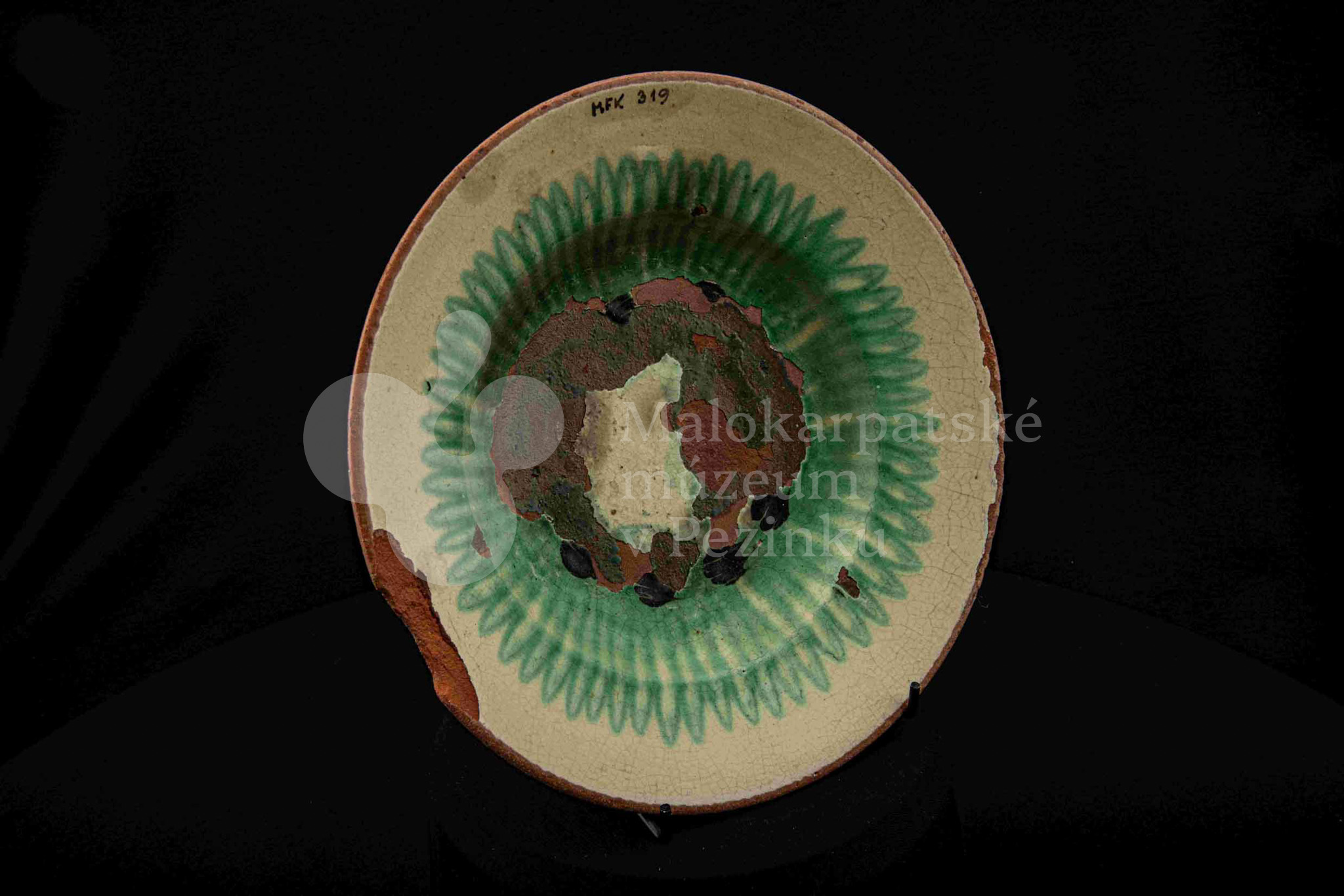 Tanier trasakovaný – črep – bledozelenej a bledohnedej farby. Bez označenia.
