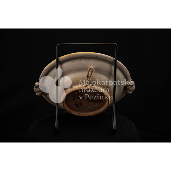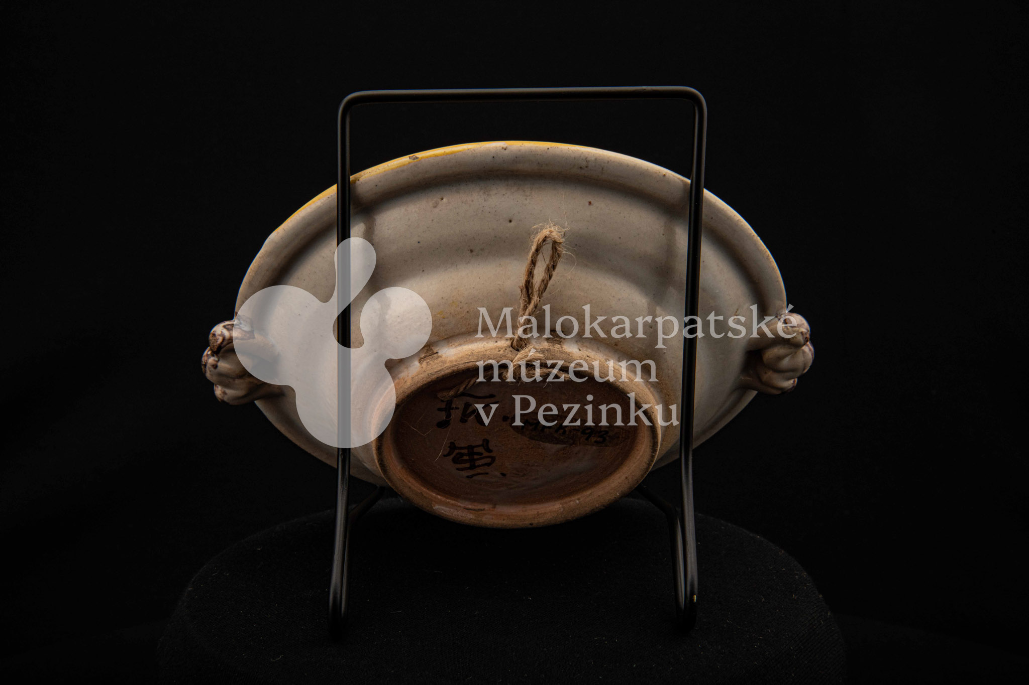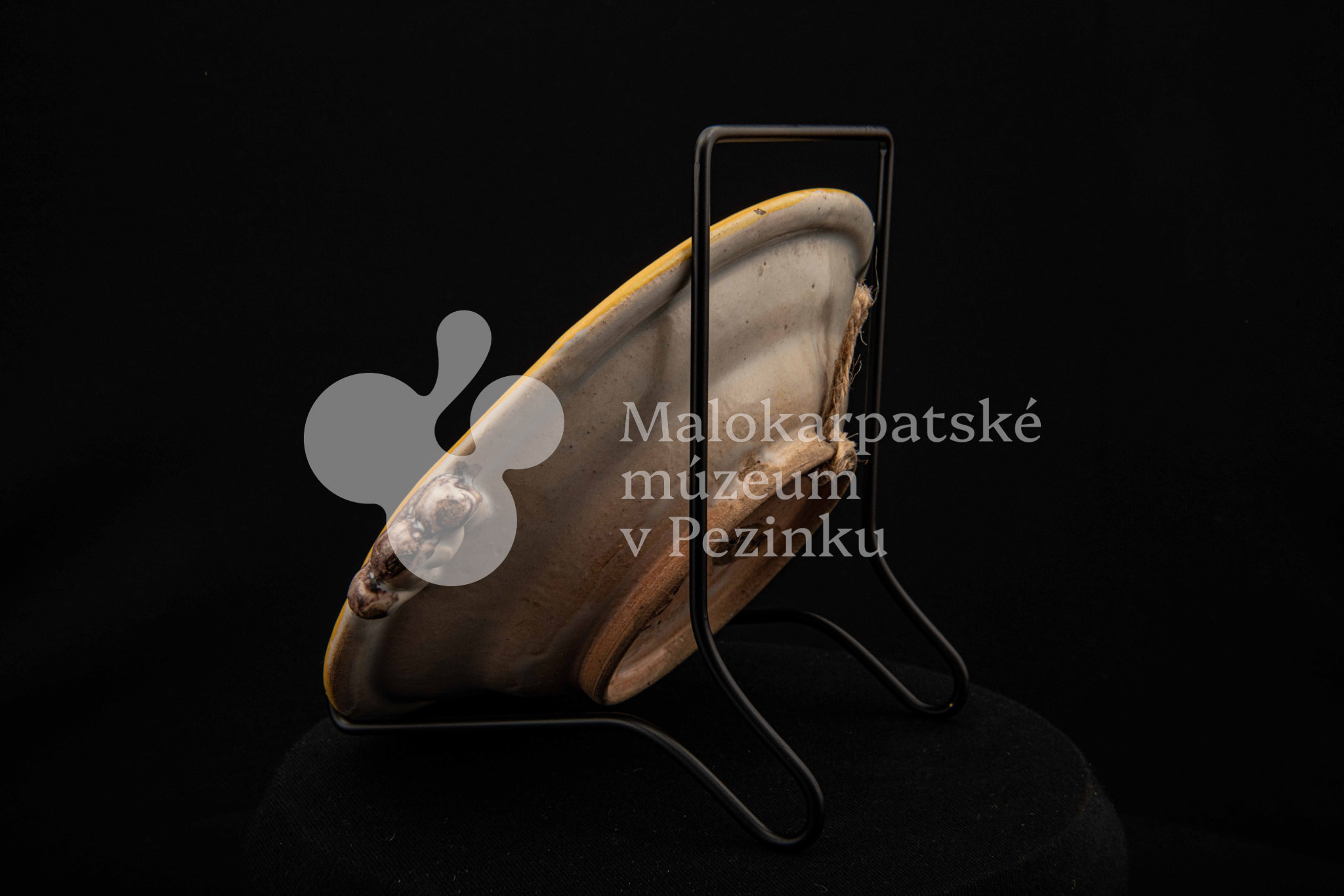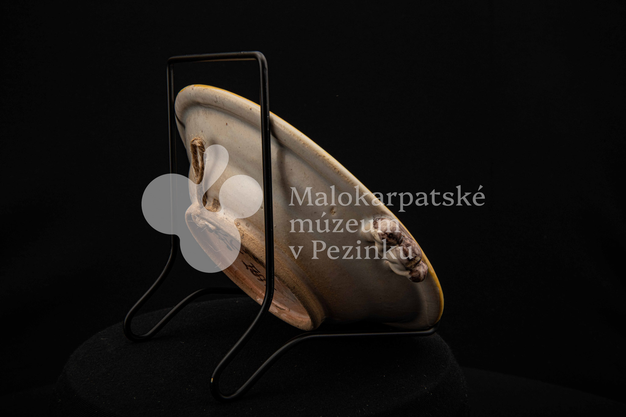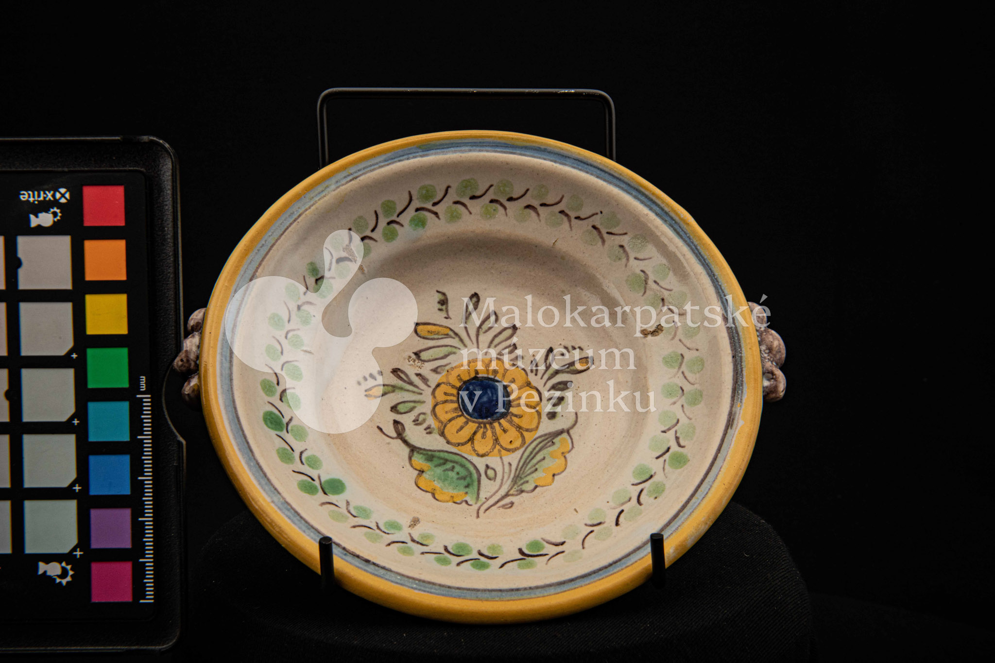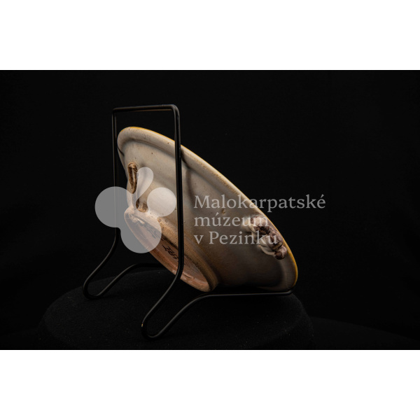 Tanierik fajansový – hlbší, rovný okraj so žltým lemovaním, zdobený zelenými bobuľkami. Má dve ozdobené ušká mangánovej farby. V strede má žlto-modrý kvet so zelenými listami. Na dne značenie FK.ST.